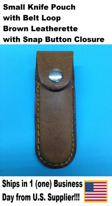 Knife Pouch – Small Brown Leatherette – with Belt Loop and Snap Button