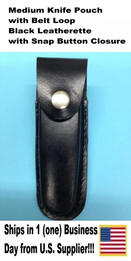 Knife Pouch – Medium – Black Leatherette – Belt Loop – Snap Button