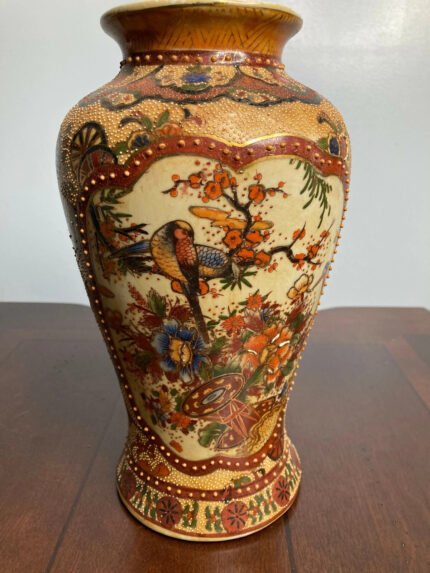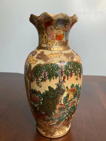 Decorative Vase – Gold Accented – Asian-Style Flower Design with Peacocks