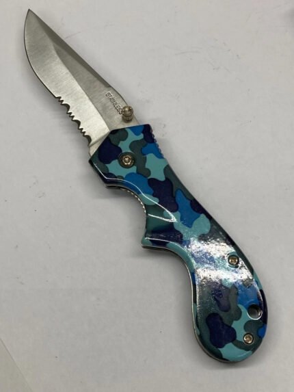 Blue Camo Knife – Combo Blade Liner Lock Pocket Clip – YK-102C