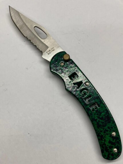 Folding Knife – Combo Edge – Pocket Clip – Green – No Box – Eagle Brand