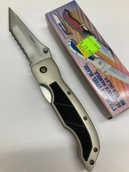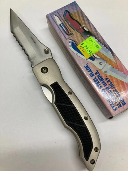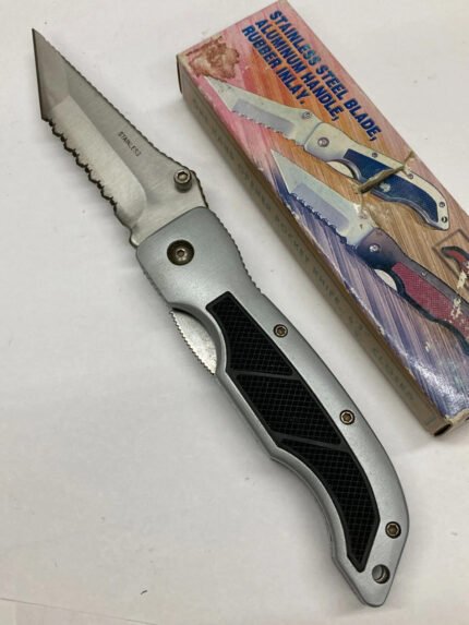 Folding Knife – Tanto – Deep Serration Blade – Silver Ridgeback
