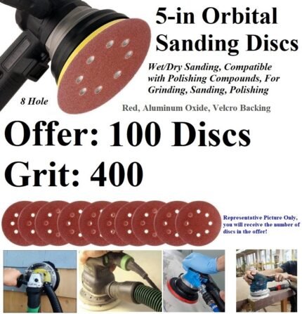 400 Grit Round Hook/Loop Sanding Disc – Red Alum Oxide – Size 5″ – 100 Pack– Orbital