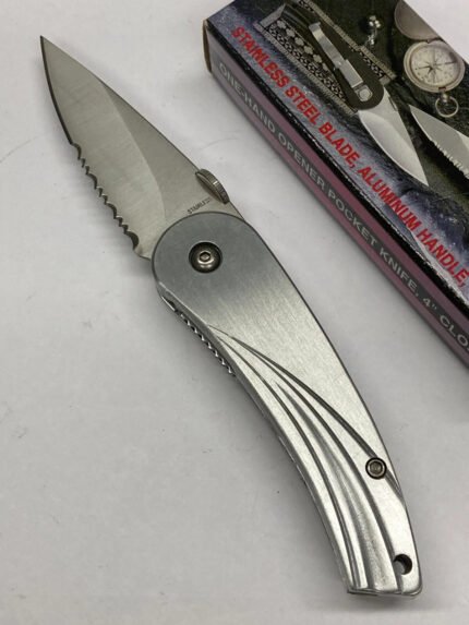 Folding Knife – Silver Leaf – Combo Blade, Liner Lock, Pocket Clip – FC-5928SS