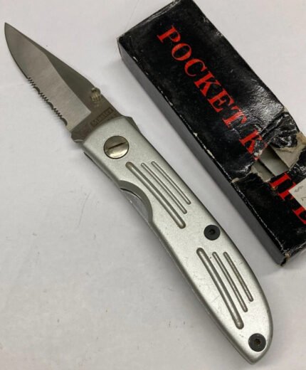 Folding Knife – Silver – Combo Blade, Thumbknob, Clip – JY-Silver