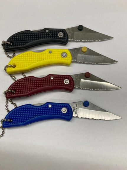 Keychain Knives – Small – Serrated Blade – Blue, Red, Yellow, and Black – Set of 4