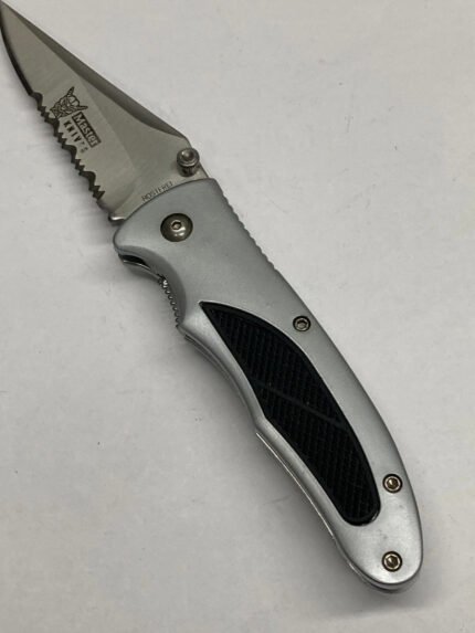 Black/Silver Folding Knife – Combo Point Blade Thumb Switch Liner Lock – K-7228