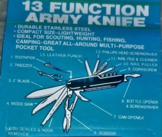 13-Function White Camping Knife – K-5011W -NOS -Circa 1998