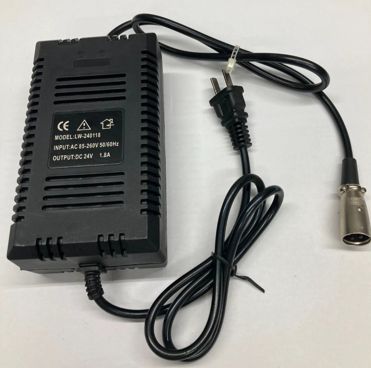 24V CHARGER – MODEL L-240118 (1.8A) Condition: New Brand: Unbranded Model / Part / MPN / OEM #: L-240118 Country of Manufacture: China UPC: N/A Description: Universal 24V charger designed for 24V equipment and power systems. Provides stable