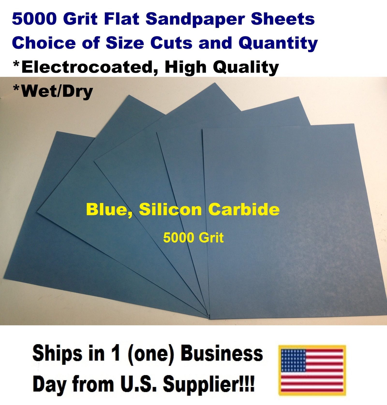 High quality abrasive sheets, 5000 grit, blue, silicon carbide, waterproof, electrocoated.