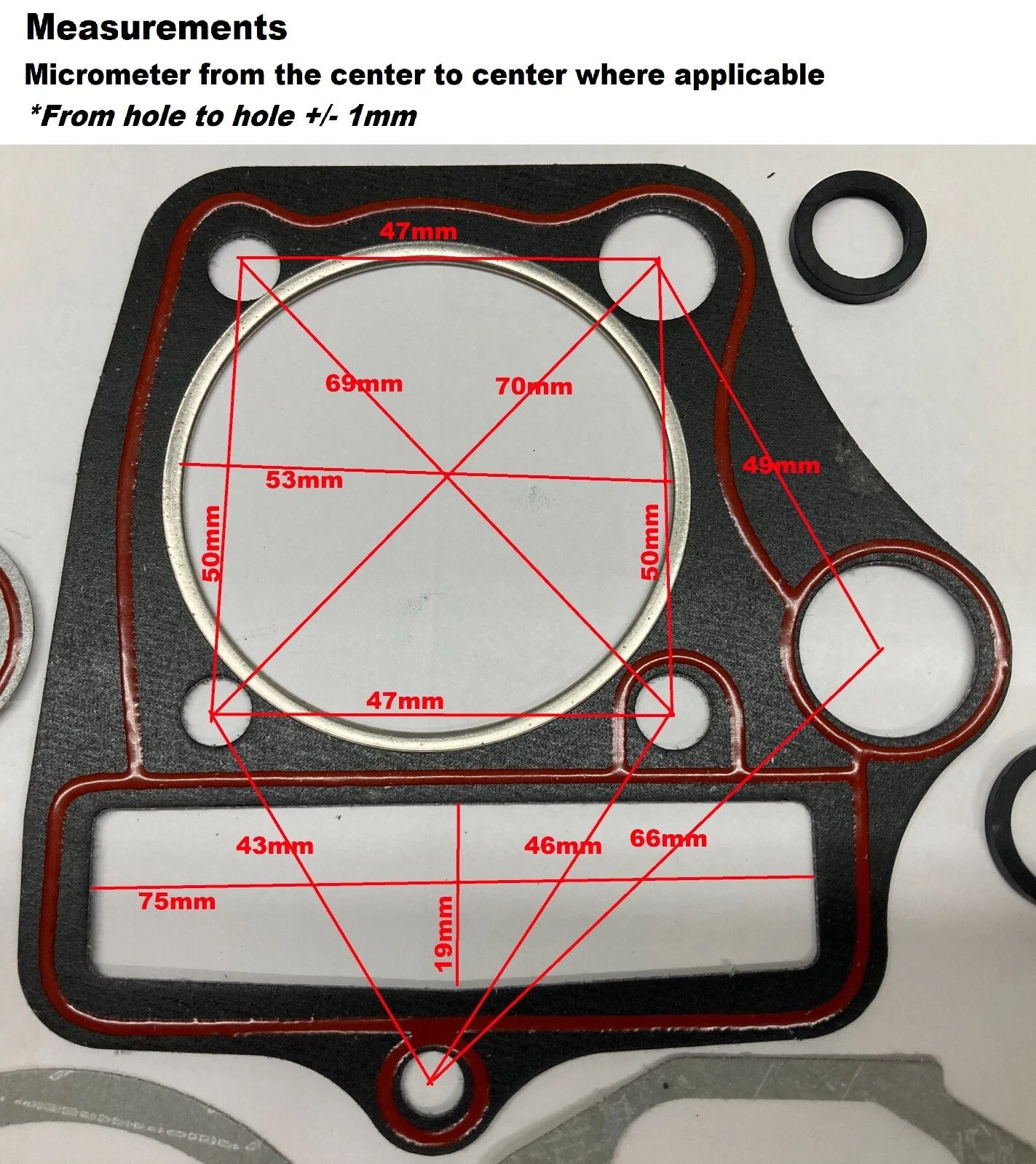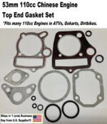 Replacement 53mm top end gasket set designed for select 110cc Chinese 4-stroke engines used in ATVs, dirt bikes, and go karts. This set includes all primary gaskets shown in the pictures and is suitable for engine rebuilds or top-end maintenance.