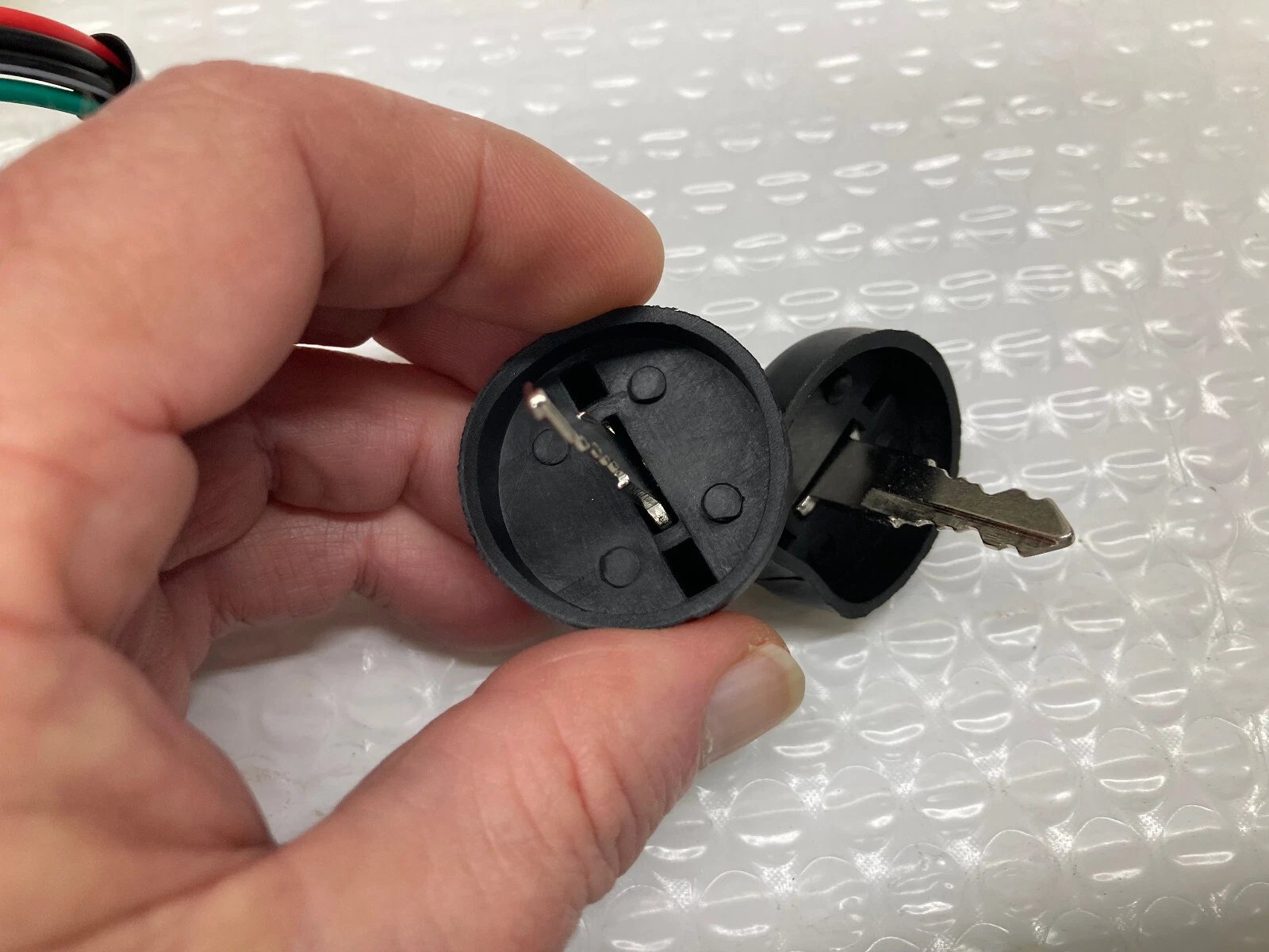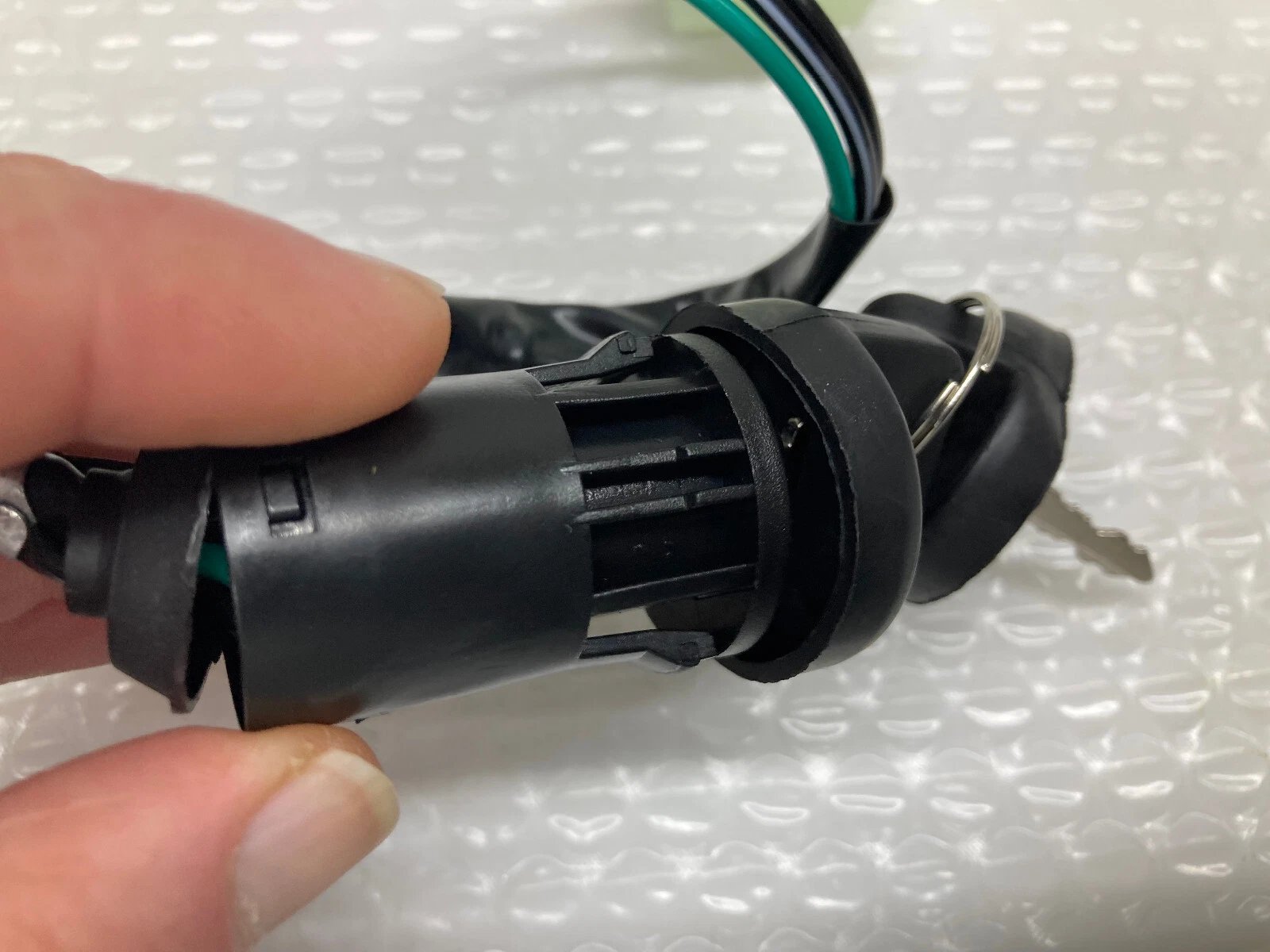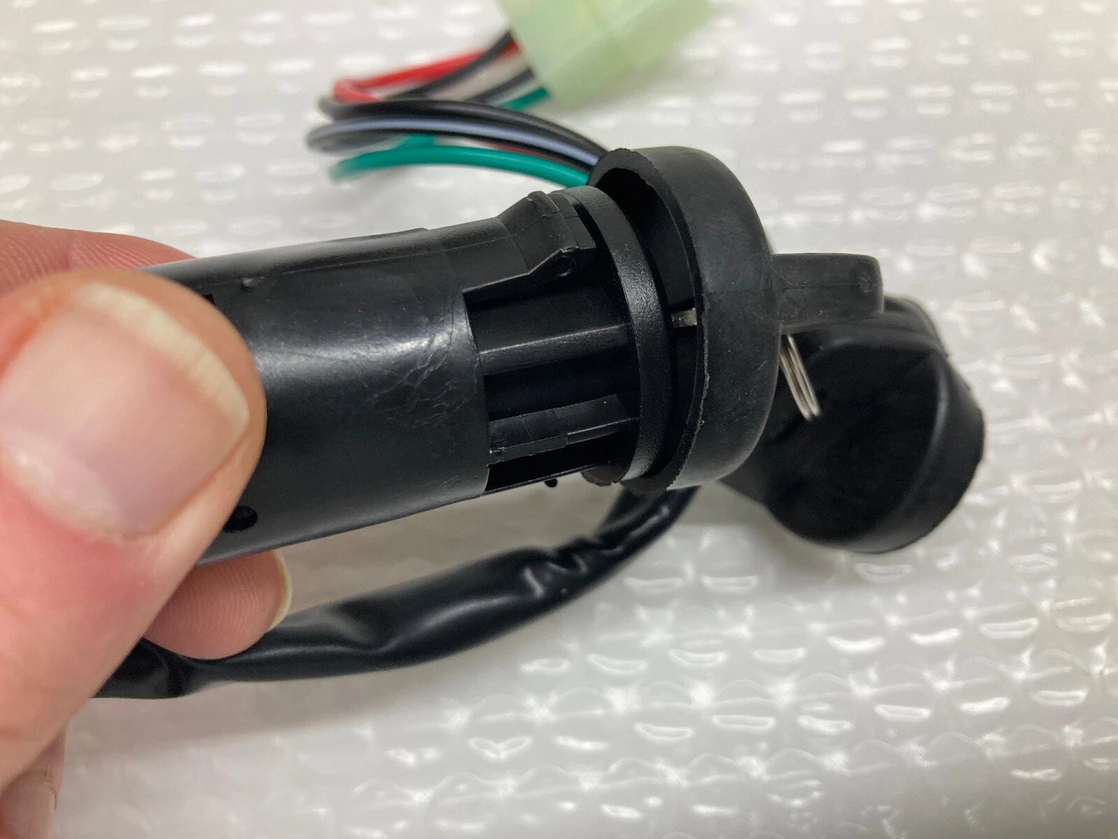 ATV IGNITION SWITCH – 4 WIRE / 4 PIN (LARGE TYPE MALE CONNECTOR) Condition: New – Tested and resealed in clear bag prior to shipment. Part Number(s): Unknown Brand: Unbranded Country of Manufacture: China Description: 4-wire, 4-pin ignition