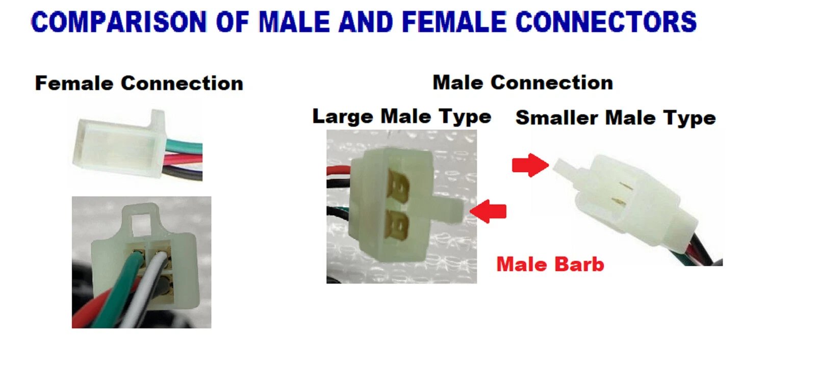 No guarantee of fitment for any particular brand or model. Manufacturers, distributors, dealers, or prior owners may have altered original specifications. Verify connector type, wire configuration, and compatibility before purchase. Items sold as described; buyer is responsible for proper use and local legal compliance.