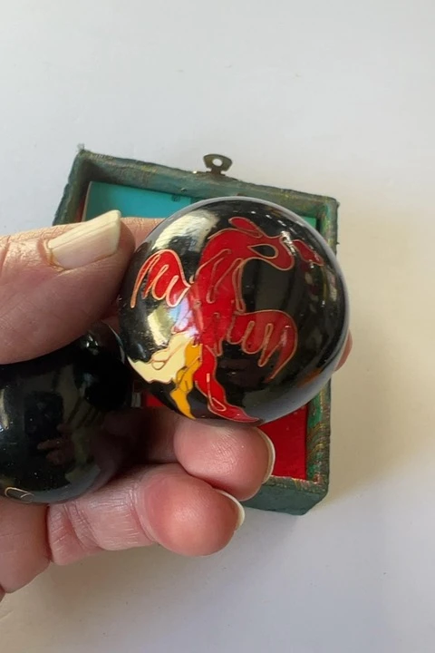 Black Set Rooster Designs Green Box – Chinese Baoding Balls – Traditional Hand Exercise & Stress Relief