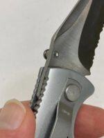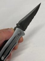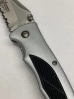 Black/Silver Folding Knife – Combo Point Blade Thumb Switch Liner Lock – K-7228