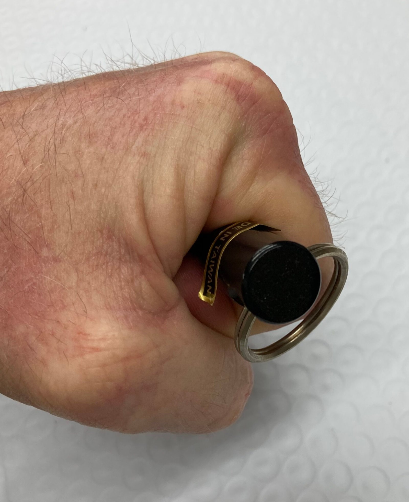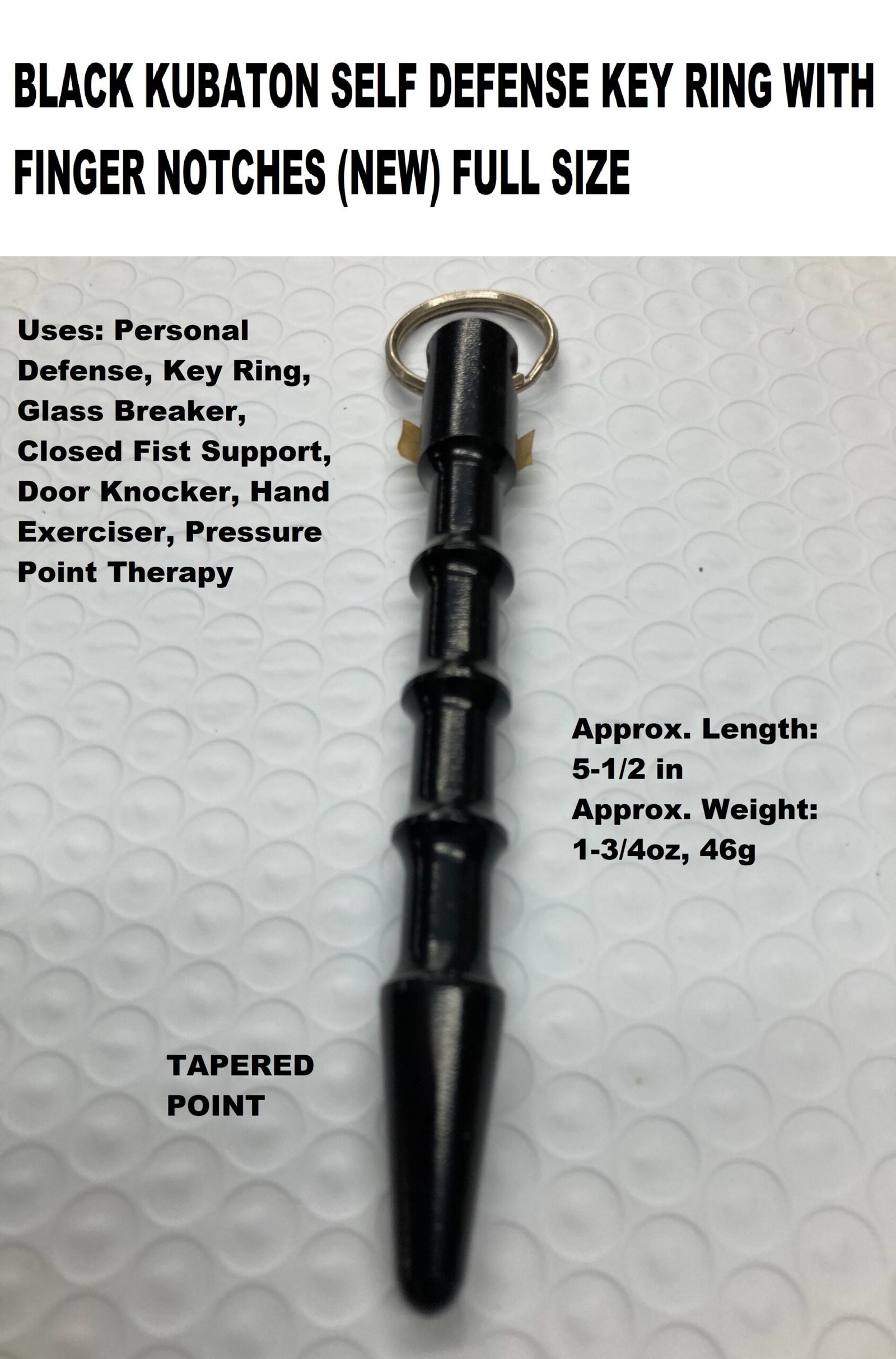 Features: Aircraft aluminum with key ring. Finger grooves with tapered tip for deep impact.