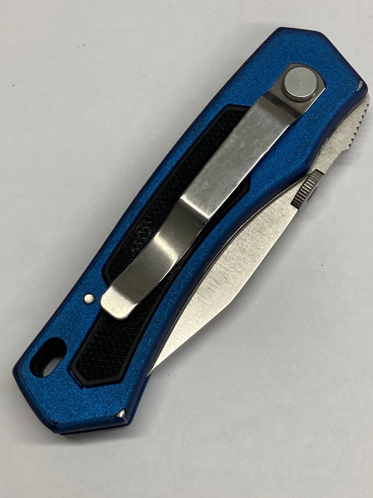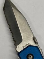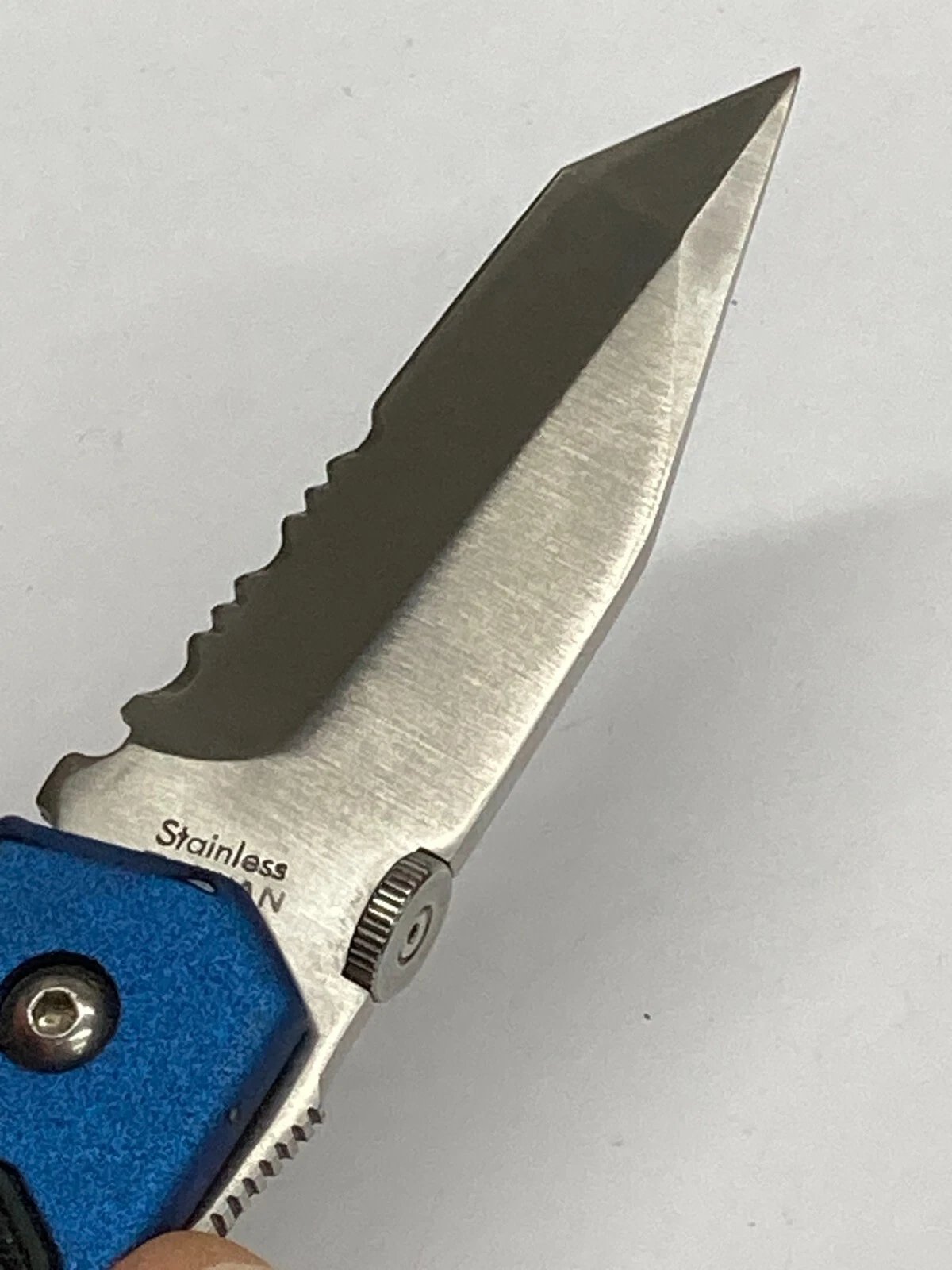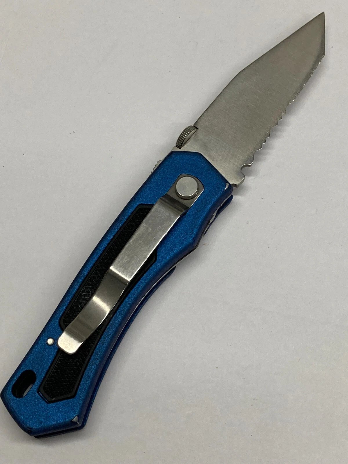 BLUE FOLDING KNIFE /COMBO TANTO BLADE, THUMB SWITCH, POCKET CLIP BLTTPCOMBO Condition: New (Dealer Old Stock – NOS) Collectible: Yes Brand / Manufacturer: Unbranded Model Number: BLTTPCOMBO Country of Manufacture: Taiwan UPC: NA Stored for