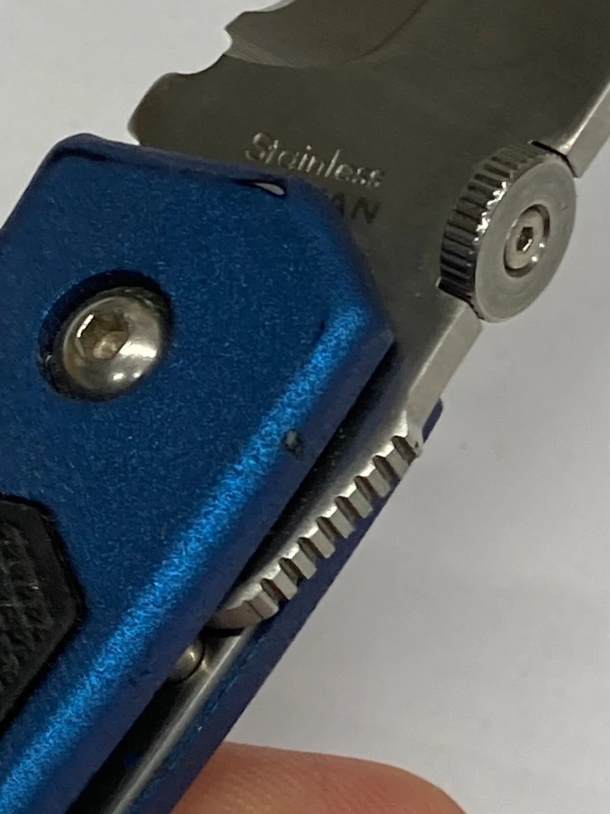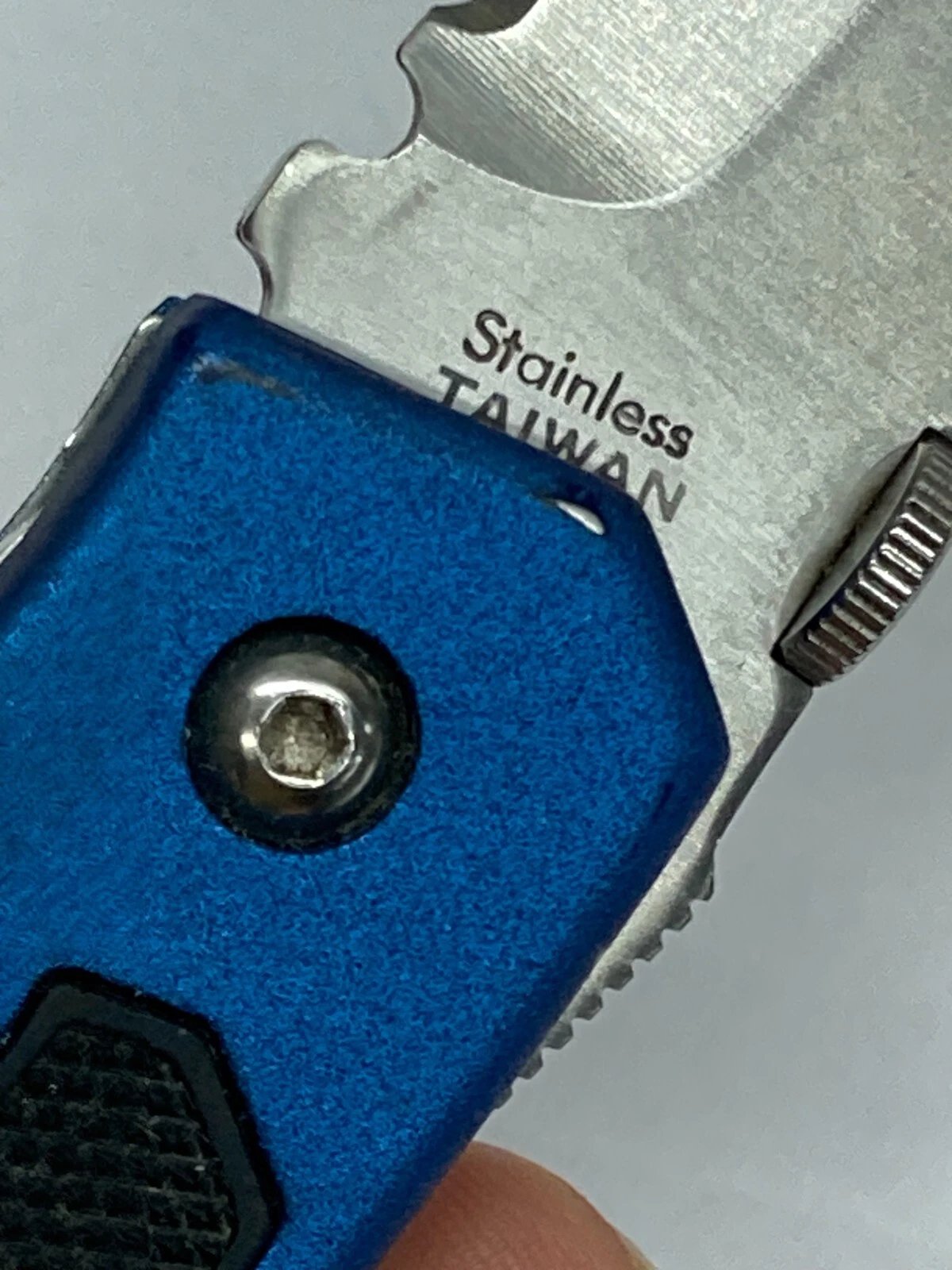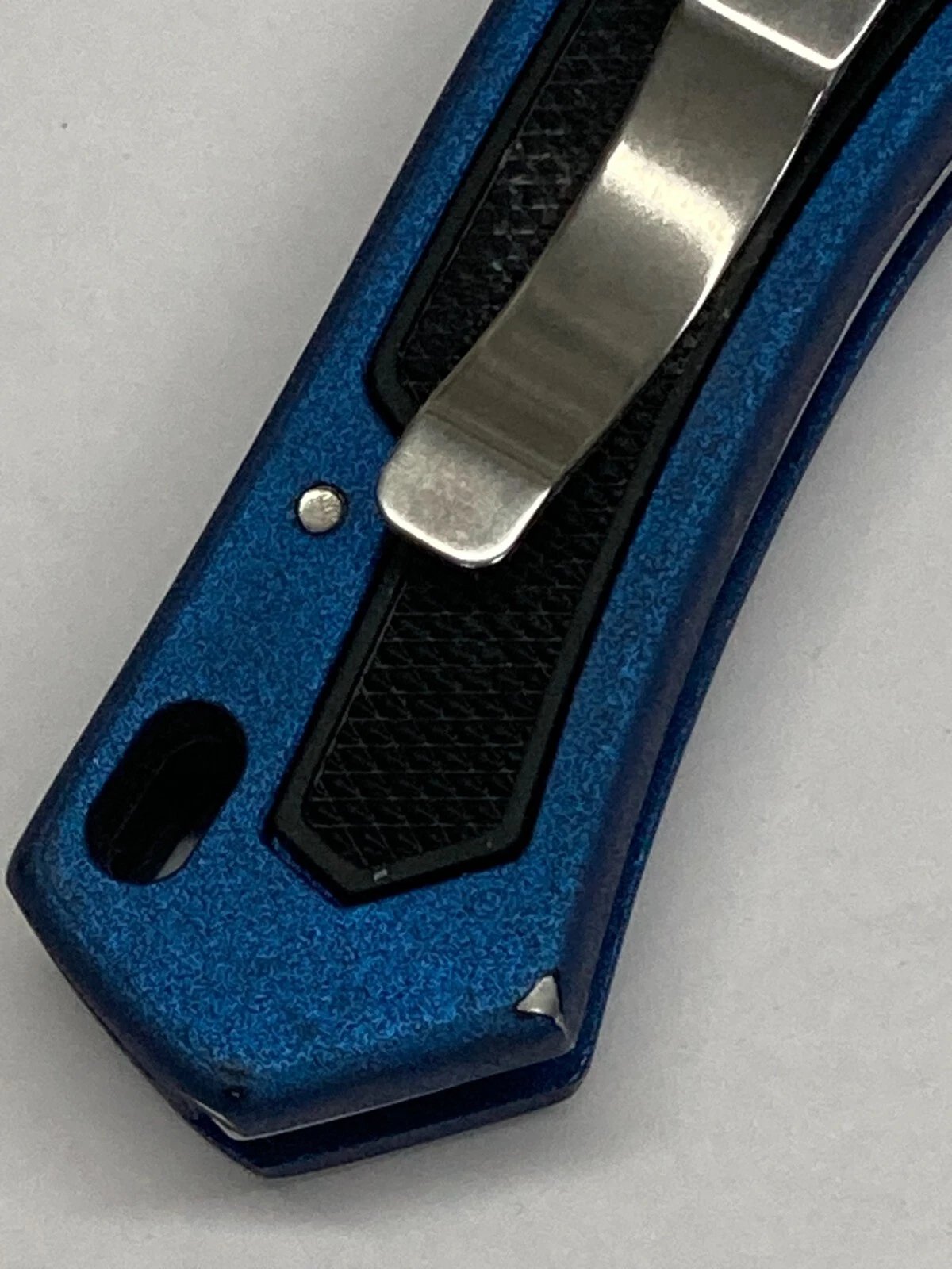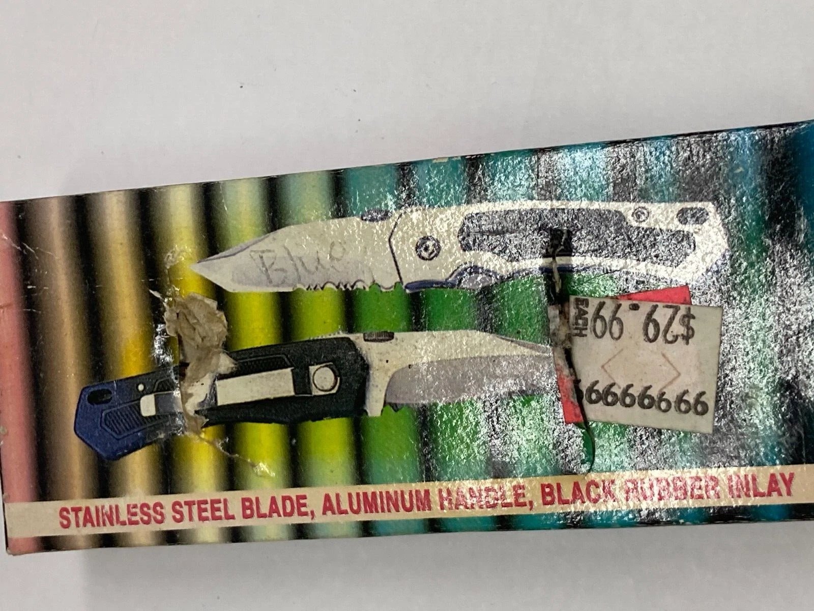 BLUE FOLDING KNIFE /COMBO TANTO BLADE, THUMB SWITCH, POCKET CLIP BLTTPCOMBO Condition: New (Dealer Old Stock – NOS) Collectible: Yes Brand / Manufacturer: Unbranded Model Number: BLTTPCOMBO Country of Manufacture: Taiwan UPC: NA Stored for