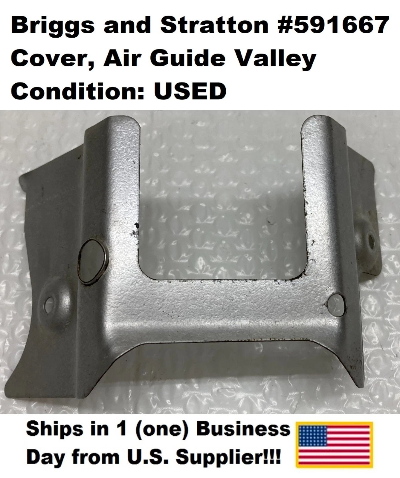 BRIGGS & STRATTON 591667 COVER, AIR GUIDE VALLEY Condition: Used (Pulled from a low-hour engine; may show normal wear such as scratches, dirt, grass residue, light oil, or minor rust areas) Brand: Briggs & Stratton MPN / OEM Part #: 591667