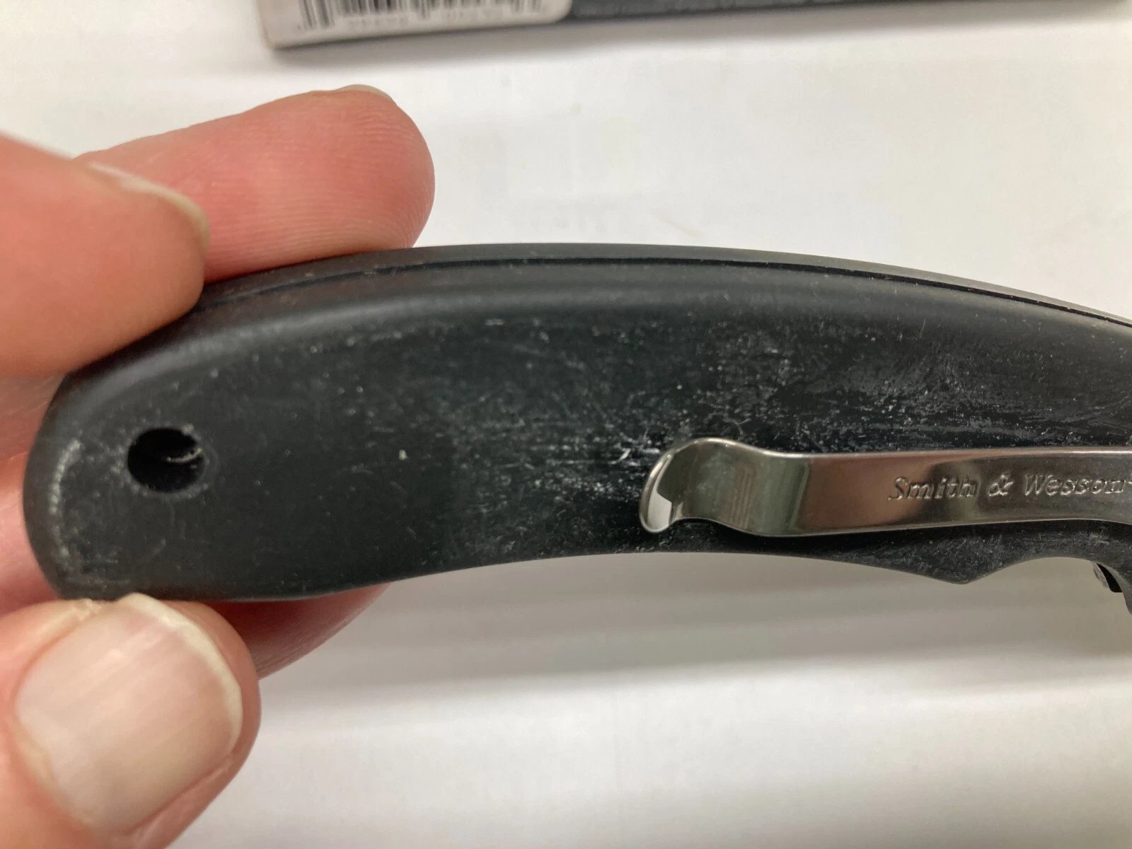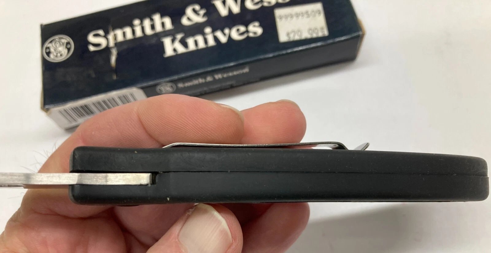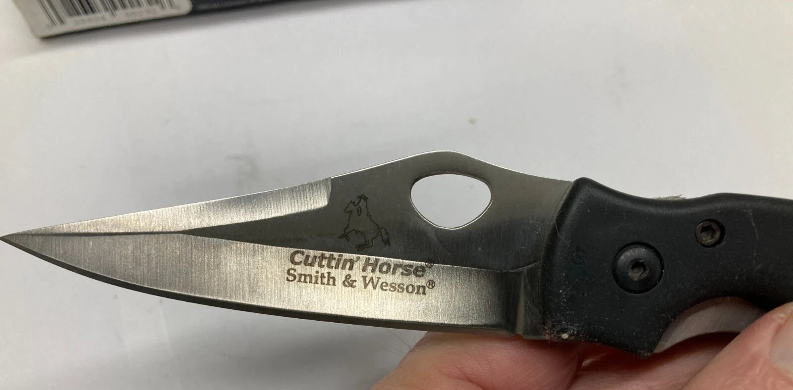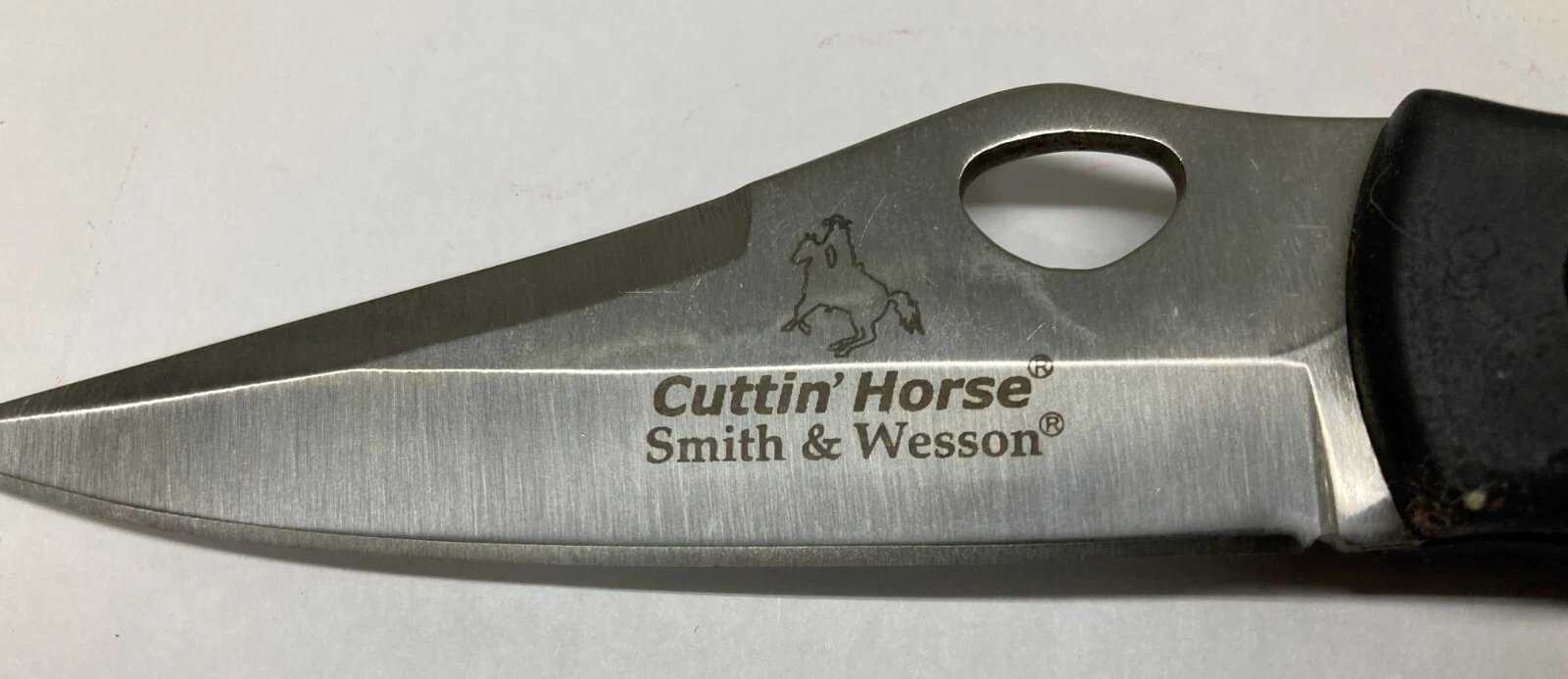 CH01USS CUTTING HORSE S&W FOLDING KNIFE WITH BELT CLIP (NEW, DEALER OLD STOCK CIRCA 1998) Condition: New (Dealer Old Stock — Stored Over 20 Years) Brand: Taylor Cutlery Model Name: Cutting Horse Model Number: CH01USS Licensed: Smith & Wesso