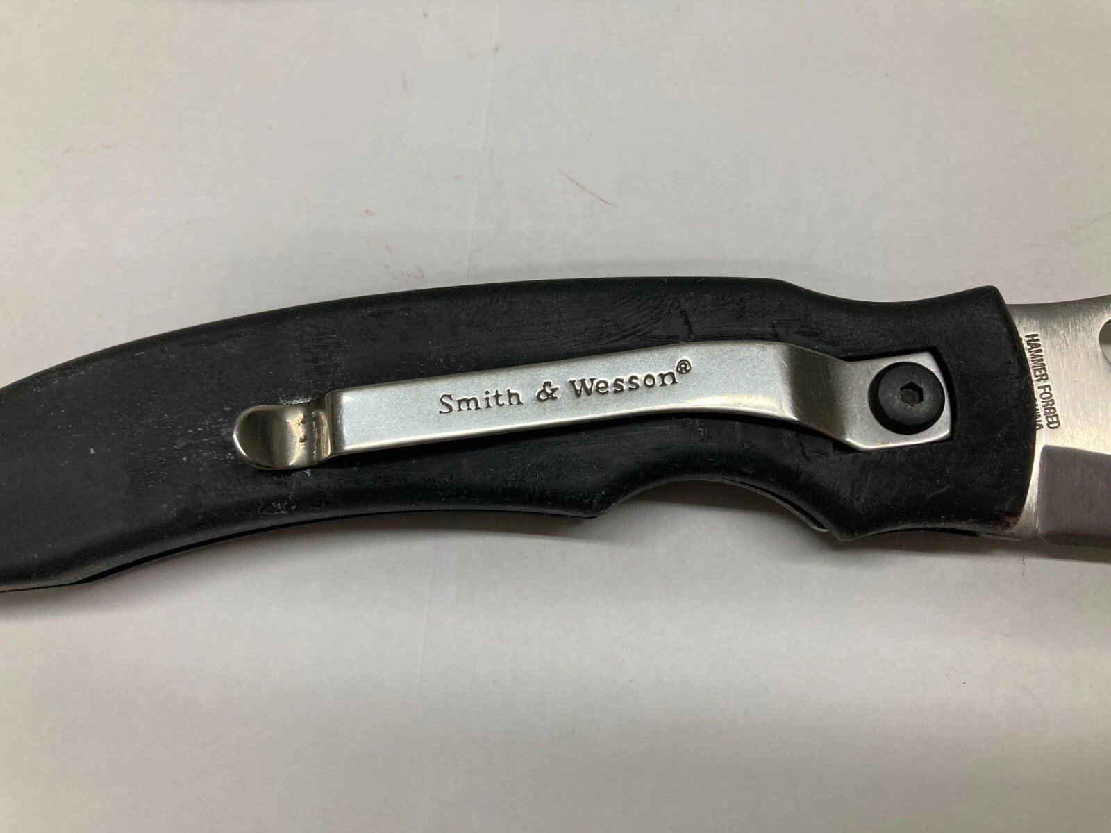 CH01USS CUTTING HORSE S&W FOLDING KNIFE WITH BELT CLIP (NEW, DEALER OLD STOCK CIRCA 1998)