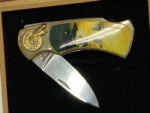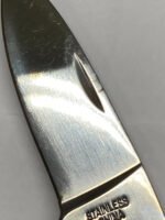 Stored for over 25 years and never used. Knife is from dealer old stock and includes the original presentation box. Boxes may show wear, aging, discoloration, or old price stickers. Inner holders may have small cuts or marks. Minor finish imperfections, scuff marks, or discoloration may appear on the handle due to age or the manufacturing process. Variations in handle finish may occur between sides. Lighting conditions may slightly alter the knife’s appearance in photos.
