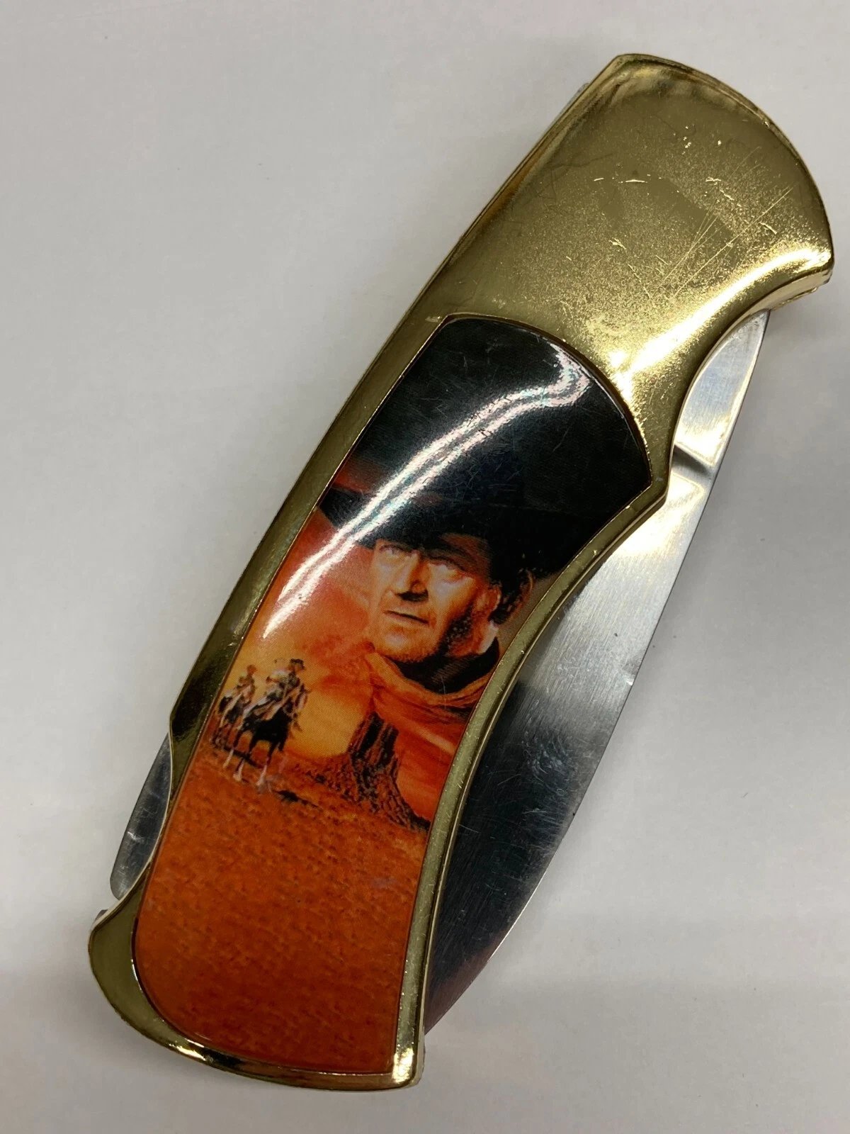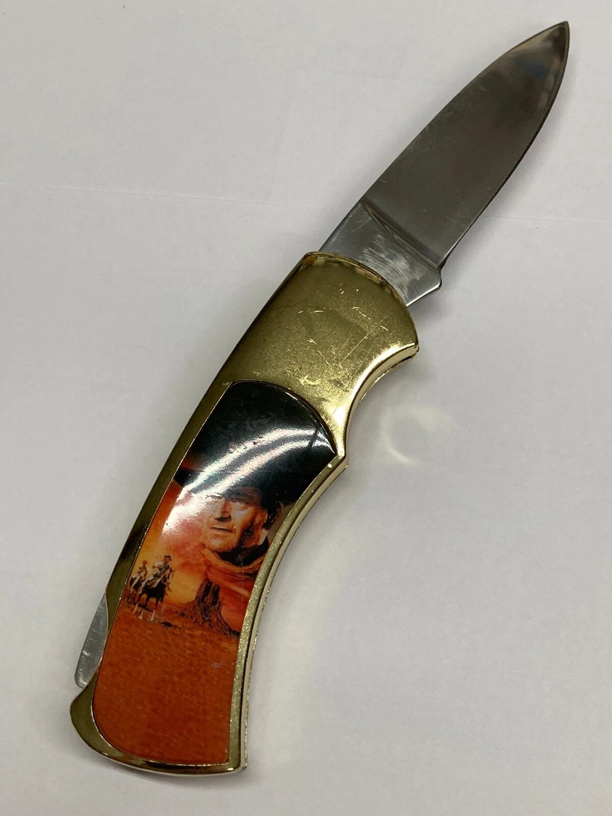 JOHN WAYNE COMMEMORATIVE KNIFE IN PRESENTATION BOX JKB Condition: New (Dealer Old Stock – NOS) Collectible: Yes Brand / Manufacturer: Unbranded Model Number: PK2020-J / J-2 Country of Manufacture: China Stored for over 25 years and never us