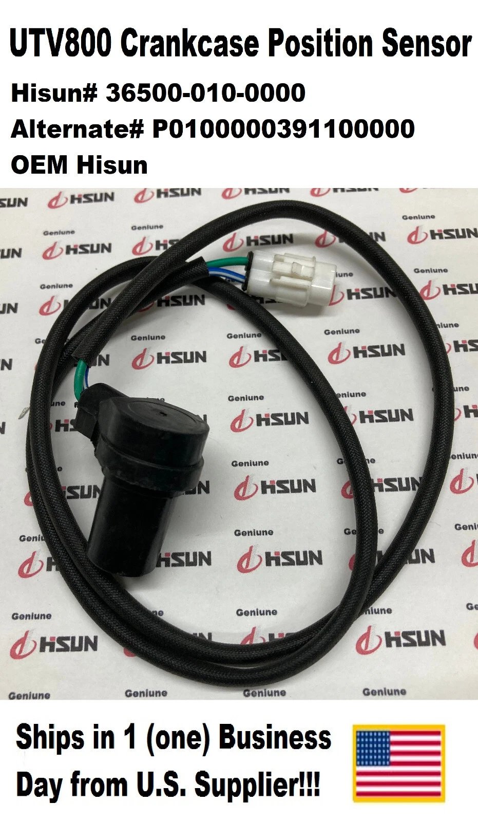 CRANKCASE POSITION SENSOR (CRANK TRIGGER) – HISUN UTV 800cc (OEM HISUN PART# 36500-010-0000 / P010000391100000) Condition: New Part Number(s): 36500-010-0000 / P010000391100000 OEM: Yes (Hisun Genuine Part) Brand: Hisun Country of Manufactu