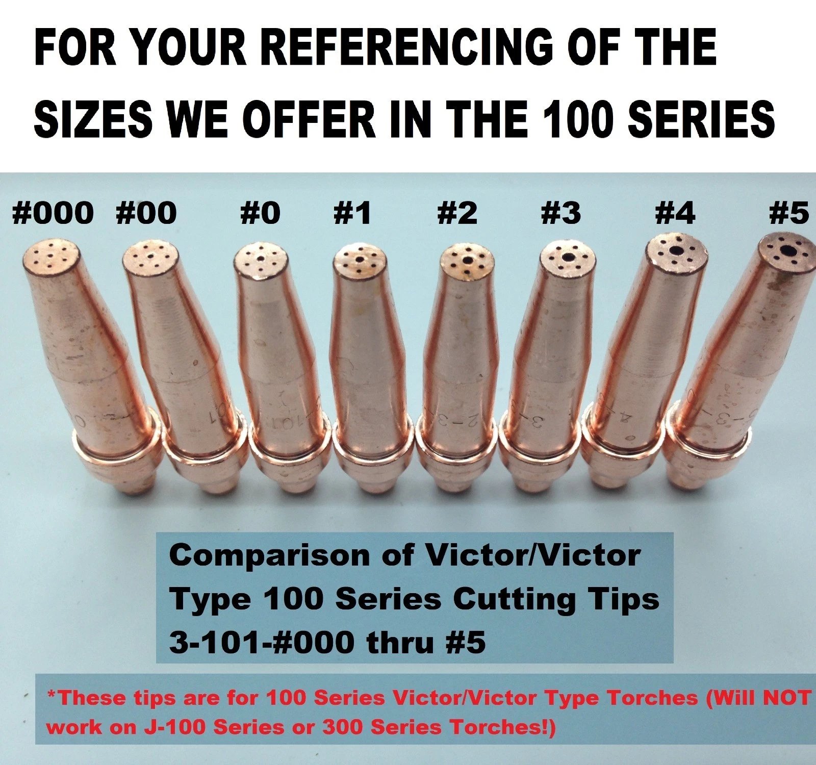 OXYGEN / ACETYLENE CUTTING TORCH TIPS – VICTOR TYPE 100 SERIES – 3-101 – SIZE #3 – 2 TIPS Condition: New MPN / Item Number: 3-101-3 UPC: Unknown Country of Manufacture: China Manufacturer: Unknown Description: Premium-quality Victor-style o