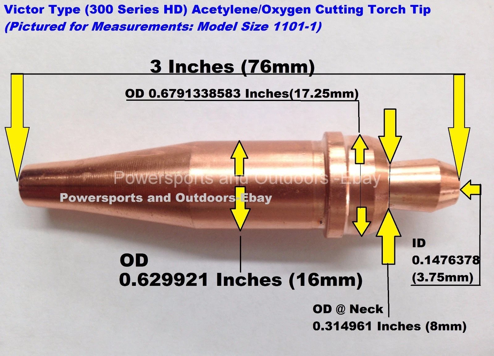 VICTOR TYPE HD (300 SERIES) OXYGEN/ACETYLENE CUTTING TORCH TIP – MODEL 1101-8 (2 TIP PACKAGE) Condition: New Country of Manufacture: China Manufacturer: Unknown Description: High-quality aftermarket Victor Type HD (300 Series) oxygen/acetyl