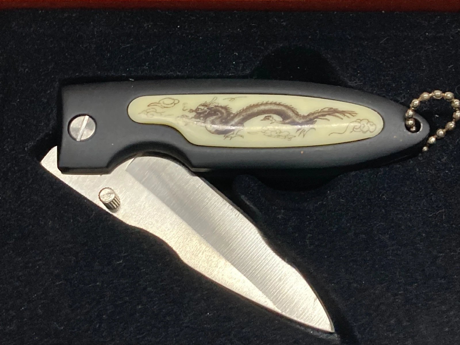 DRAGON FOLDING KNIFE /PLAIN BLADE, LINER LOCK IN PRESENTATION BOX C-7037DNB