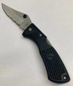 EAGLE BRAND LOCKBACK COMBO EDGE FOLDING KNIFE /THUMB SWITCH (EAGLEGB-C) Condition: New (Dealer Old Stock – NOS) Collectible: Yes Brand / Manufacturer: Eagle Model Number: EagleGB-C Country of Manufacture: Taiwan Stored for over 25 years and