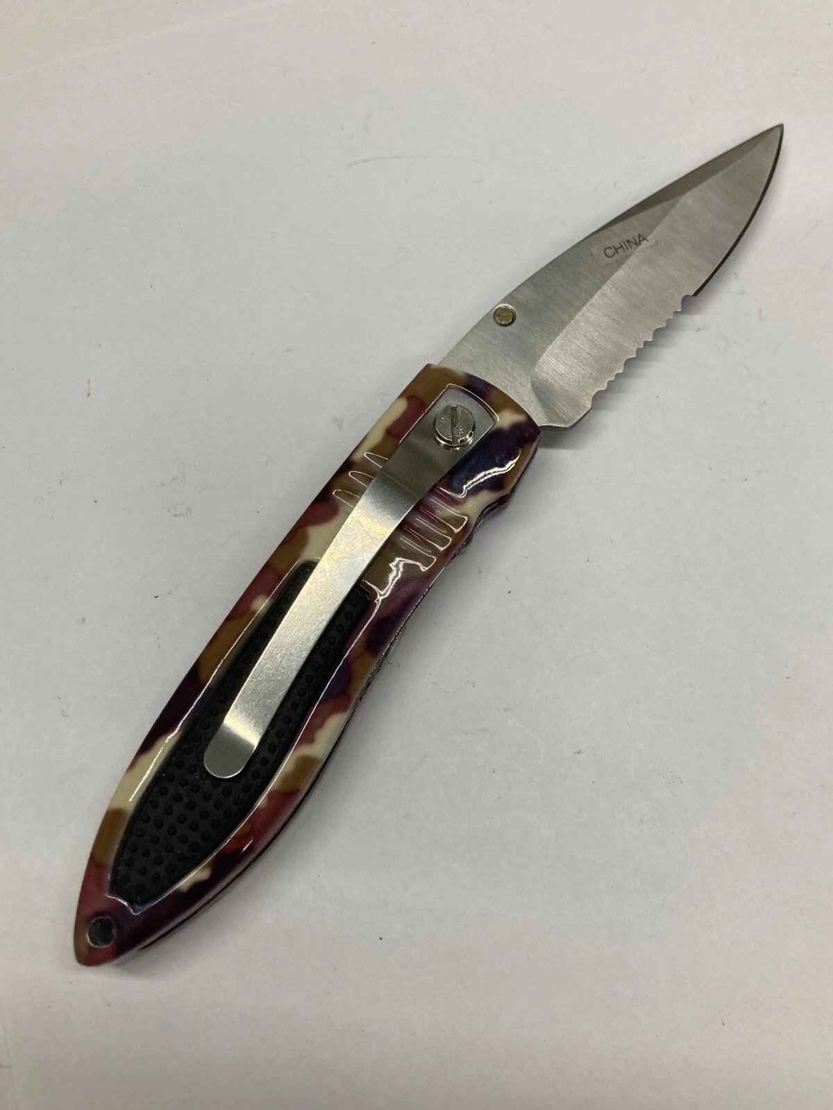 JAQUAR CAMO COMBO FOLDER / LINER LOCK WITH POCKET CLIP YK-723CMS Condition: Dealer New Old Stock (NOS). Stored over 25 years; never used or sharpened.