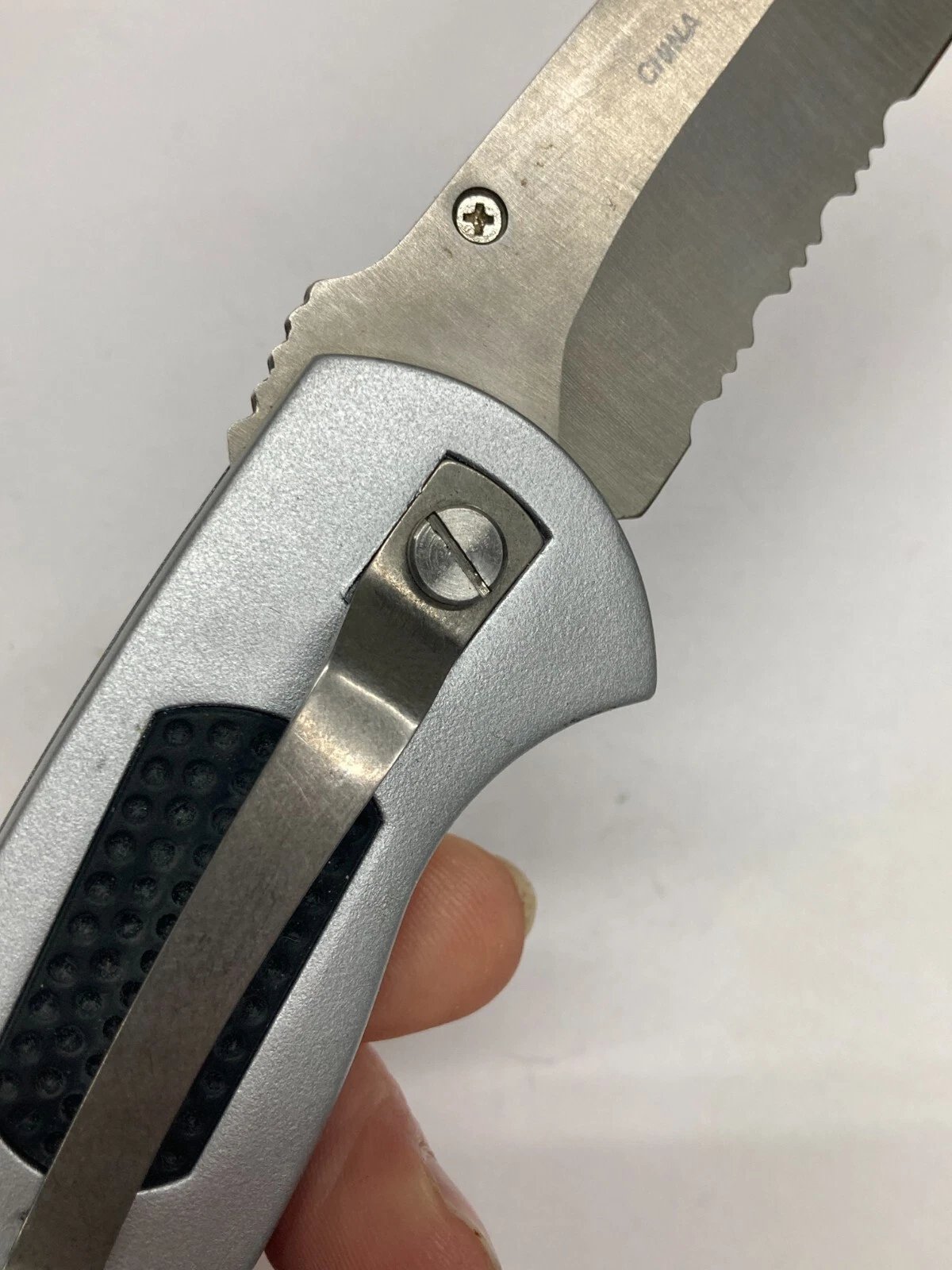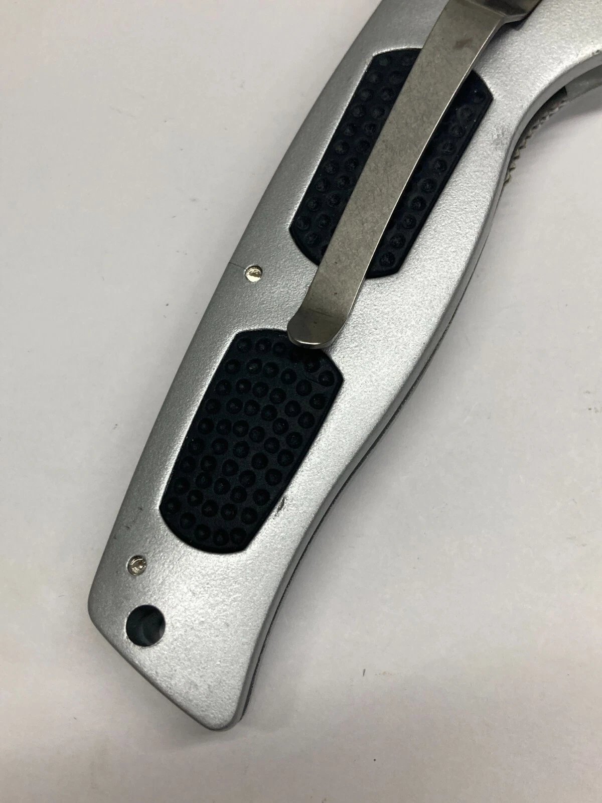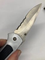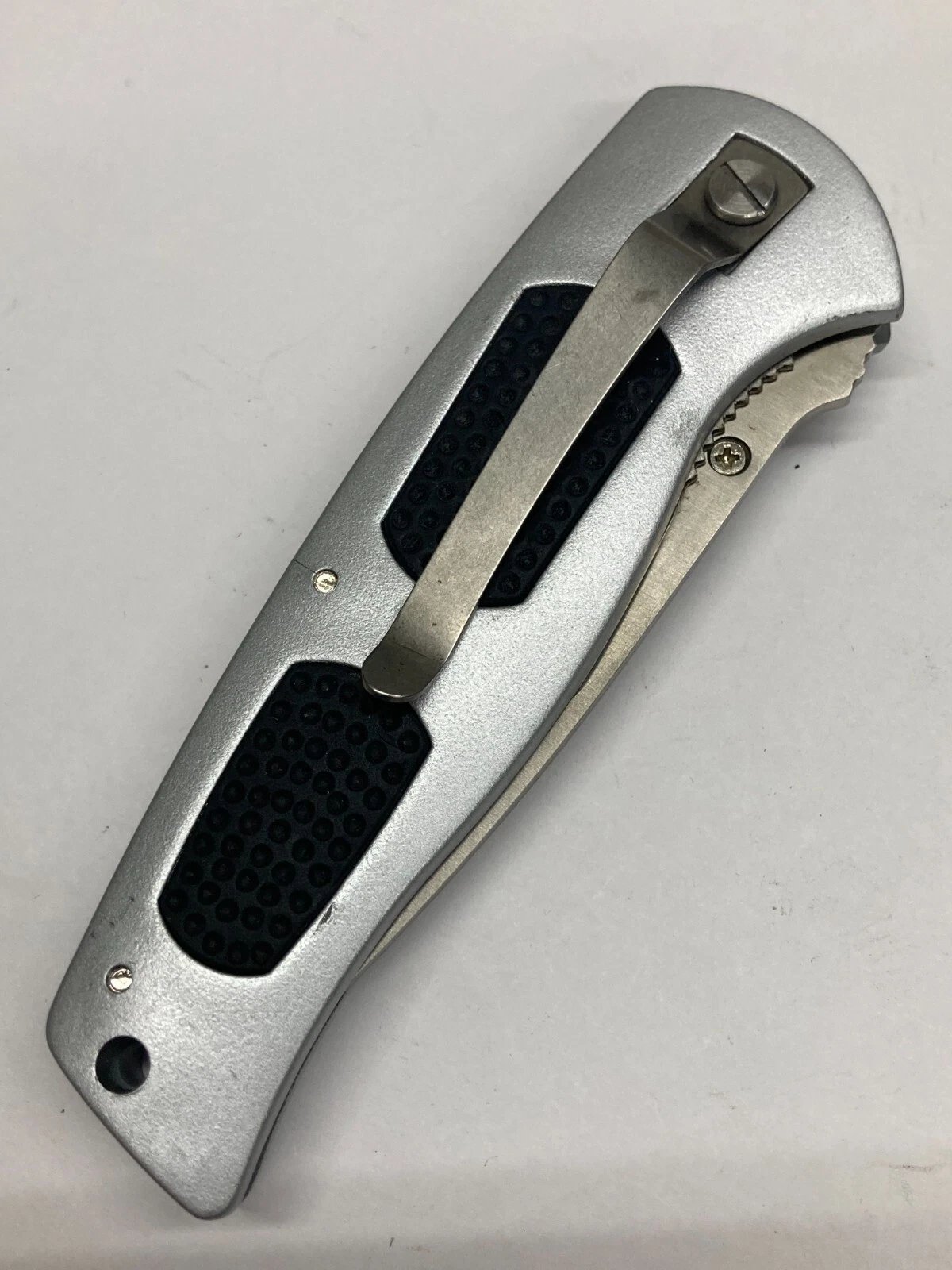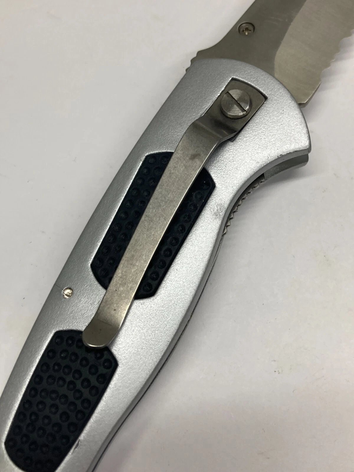 JAQUAR FOLDING KNIFE / COMBO BLADE, THUMB KNOB, LINER LOCK LK-4414S Condition: New (Dealer Old Stock – NOS) Brand / Manufacturer: Jaquar Model Number: LK-4414S Country of Manufacture: China UPC: N/A Stored for over 25 years and never used.