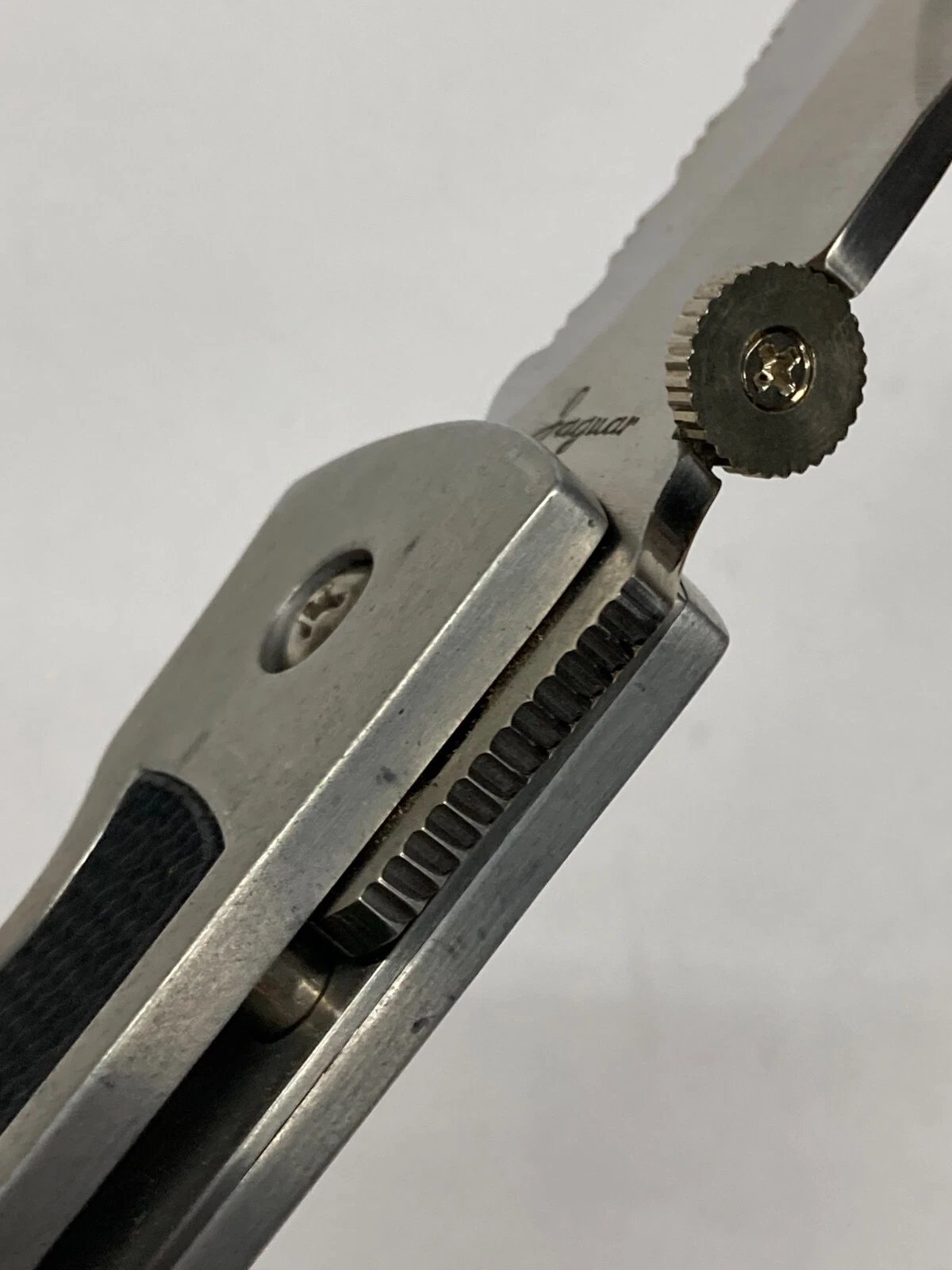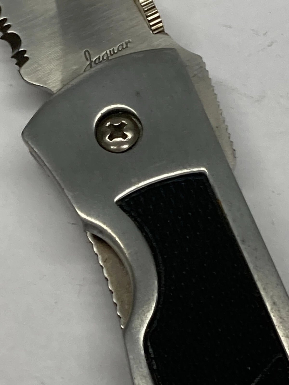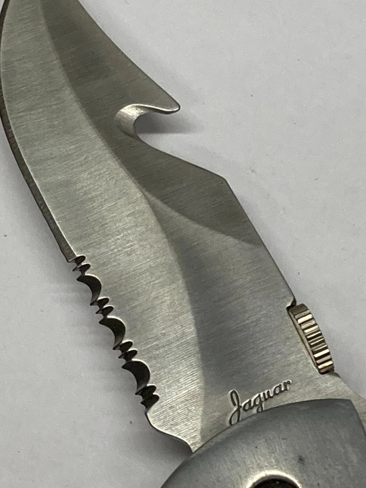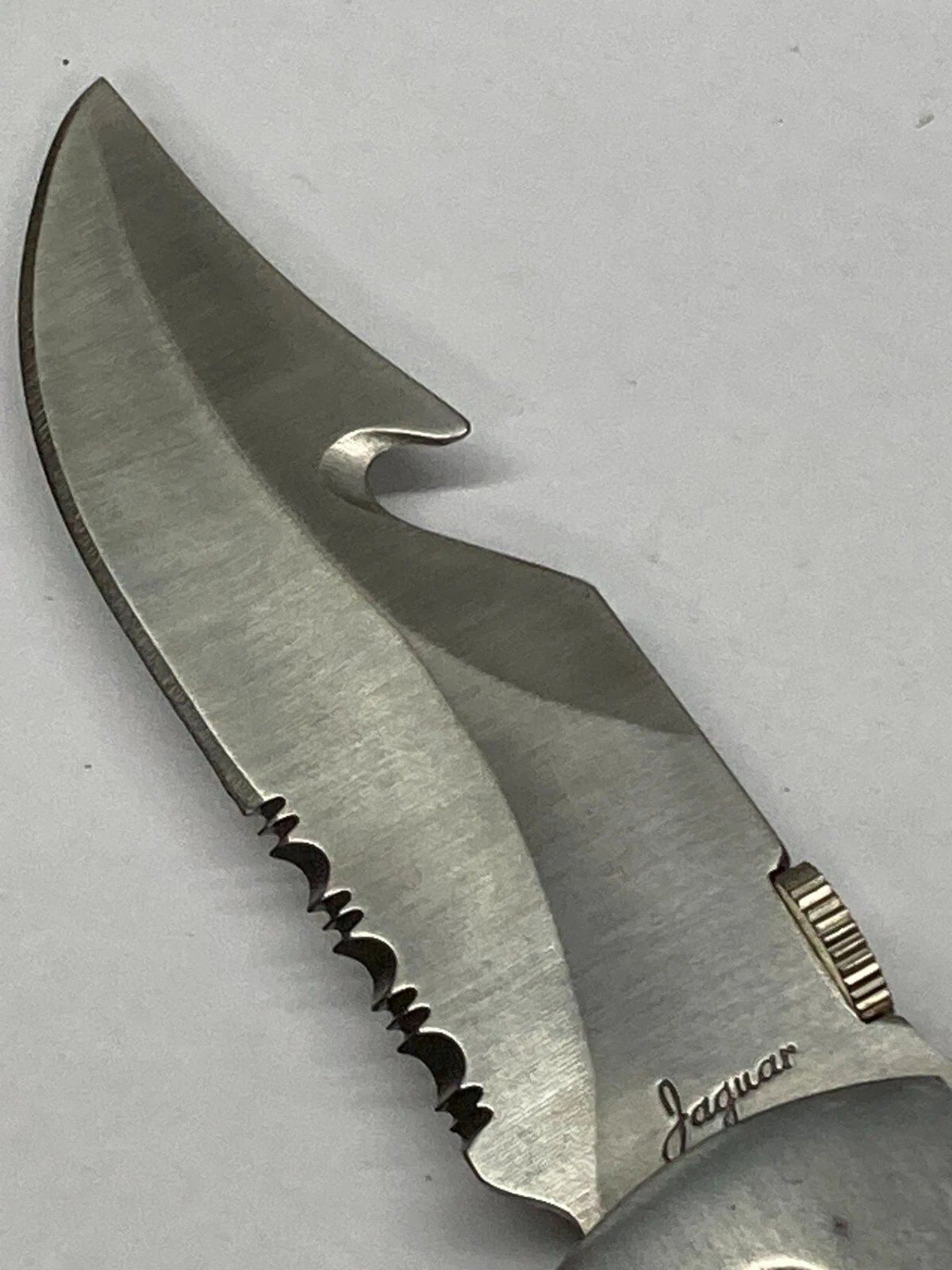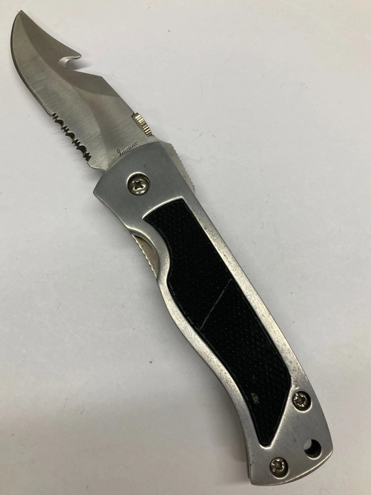 JAQUAR FOLDING KNIFE SILVER WITH GUT HOOK C-7075SAC (DEALER OLD STOCK)