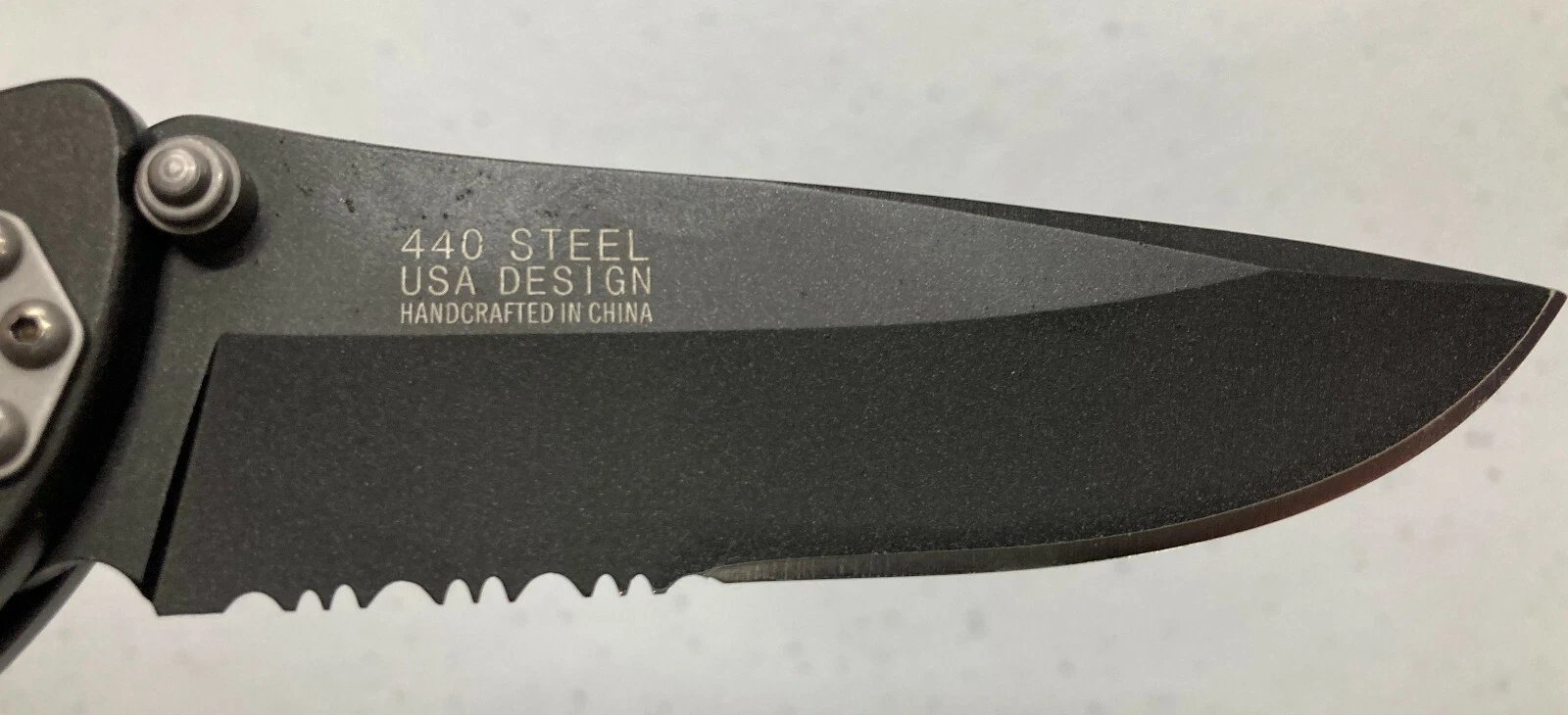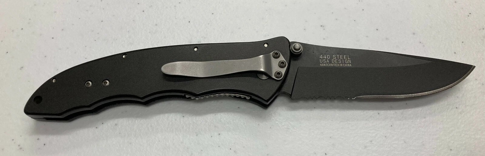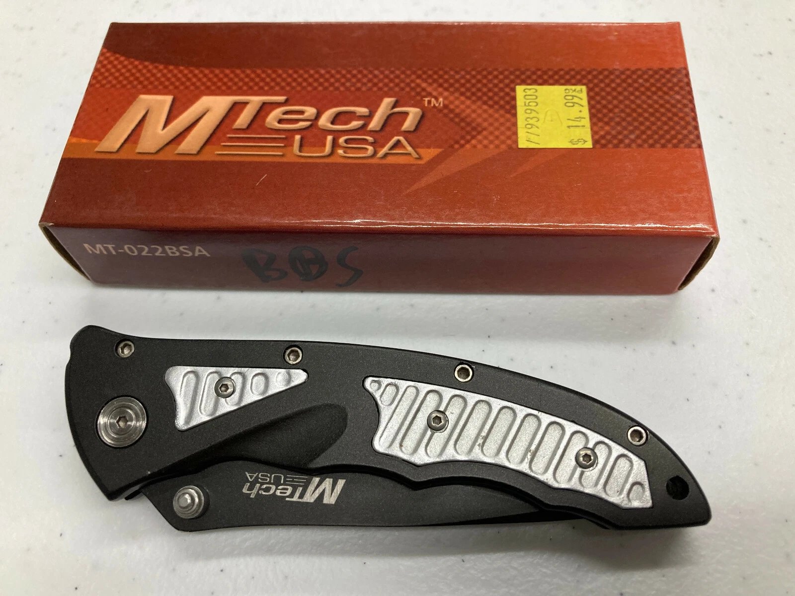 M-TECH FOLDING KNIFE WITH POCKET CLIP (BLACK/SILVER – COMBO EDGE) – ITEM #022BSA – UPC 805319027794 – CIRCA EARLY 1990s