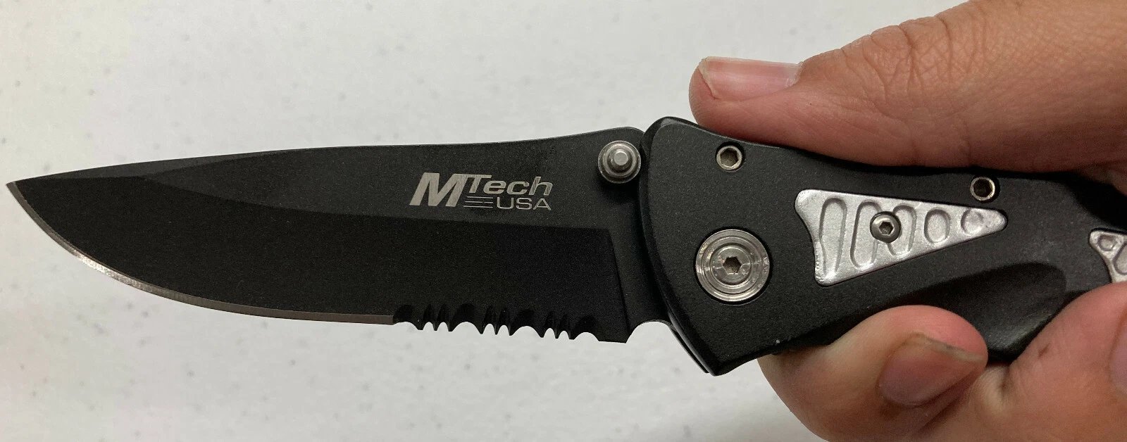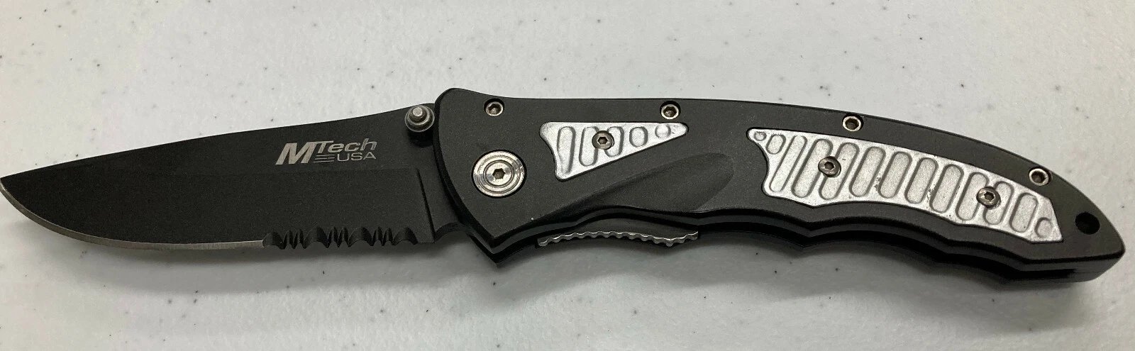 Folding Knife – M-Tech 022BSA – Black/Silver – Combo Edge – Pocket Clip – Item# 022BSA