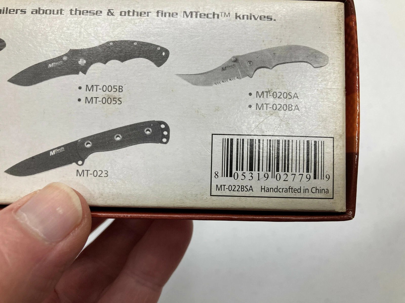 M-TECH FOLDING KNIFE WITH POCKET CLIP (BLACK/SILVER – COMBO EDGE) – ITEM #022BSA – UPC 805319027794 – CIRCA EARLY 1990s Condition: New (Dealer Old Stock) – Some boxes may show minor aging, small cuts, or light discoloration. Box color schem