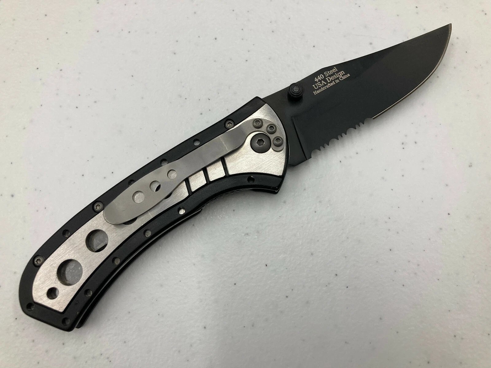 M-TECH BLK/SILVER FOLDER / POCKET CLIP (BLACK COMBO EDGE) Item# MT-088