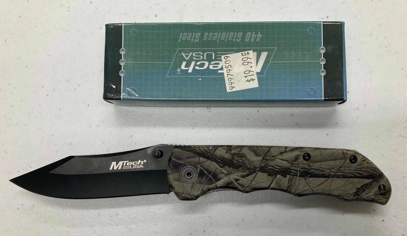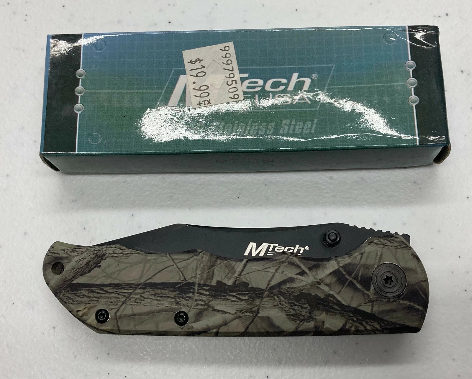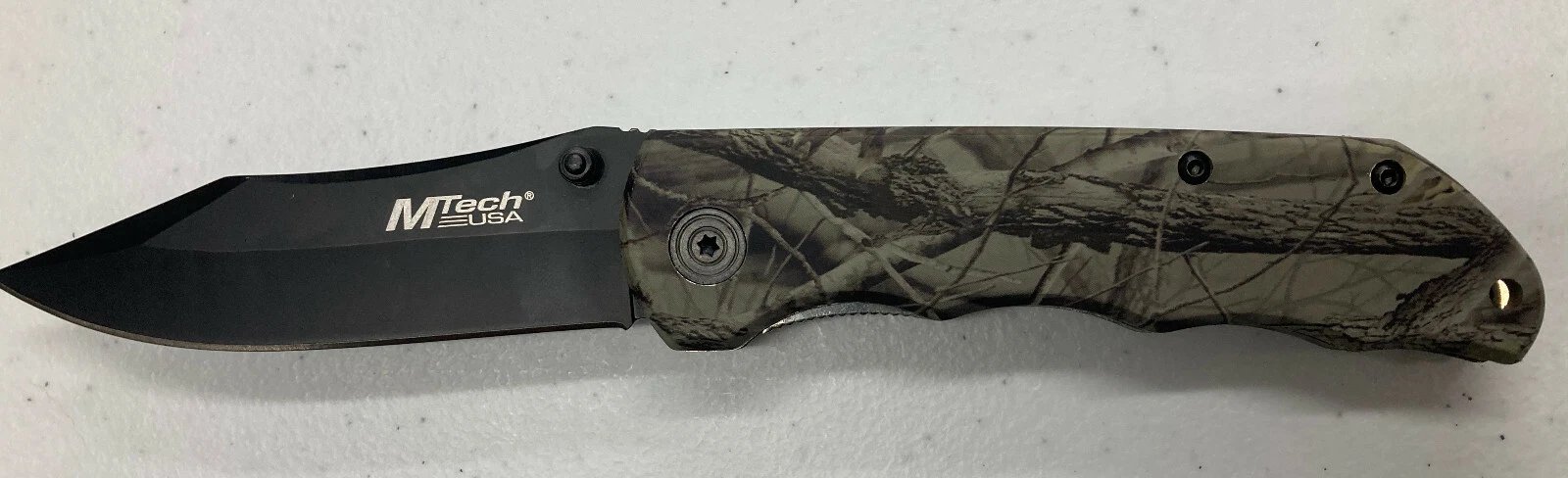 M-TECH FOLDING LOCKBLADE KNIFE CAMOUFLAGE HANDLE BLACK CLIP POINT MT-116C3 Condition: Dealer New Old Stock (NOS) Collectible: Yes MPN / Item Number: MT-116C3 UPC: 805319041030 Country of Manufacture: China Manufacturer: M-Tech Folding lockb