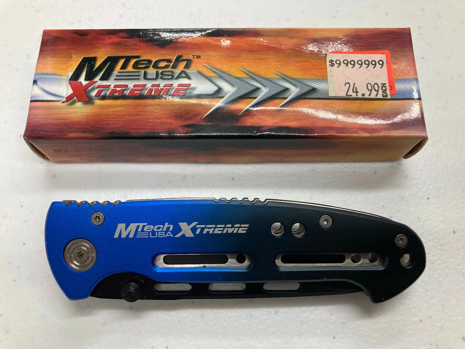 M-TECH FOLDING LOCKBLADE KNIFE WITH POCKET CLIP (BLACK – COMBO EDGE) – ITEM #MX-8022BL – UPC 805319046561 – CIRCA EARLY 1990s Condition: New (Dealer Old Stock) – Some boxes may show aging, small cuts, or light fading. Box color schemes may