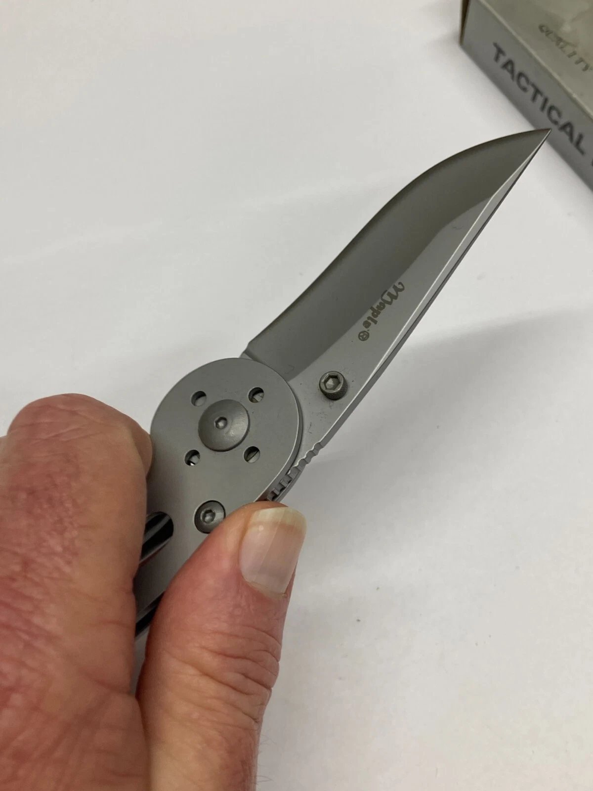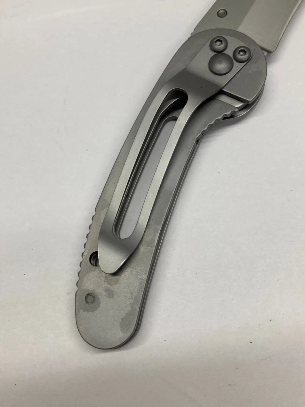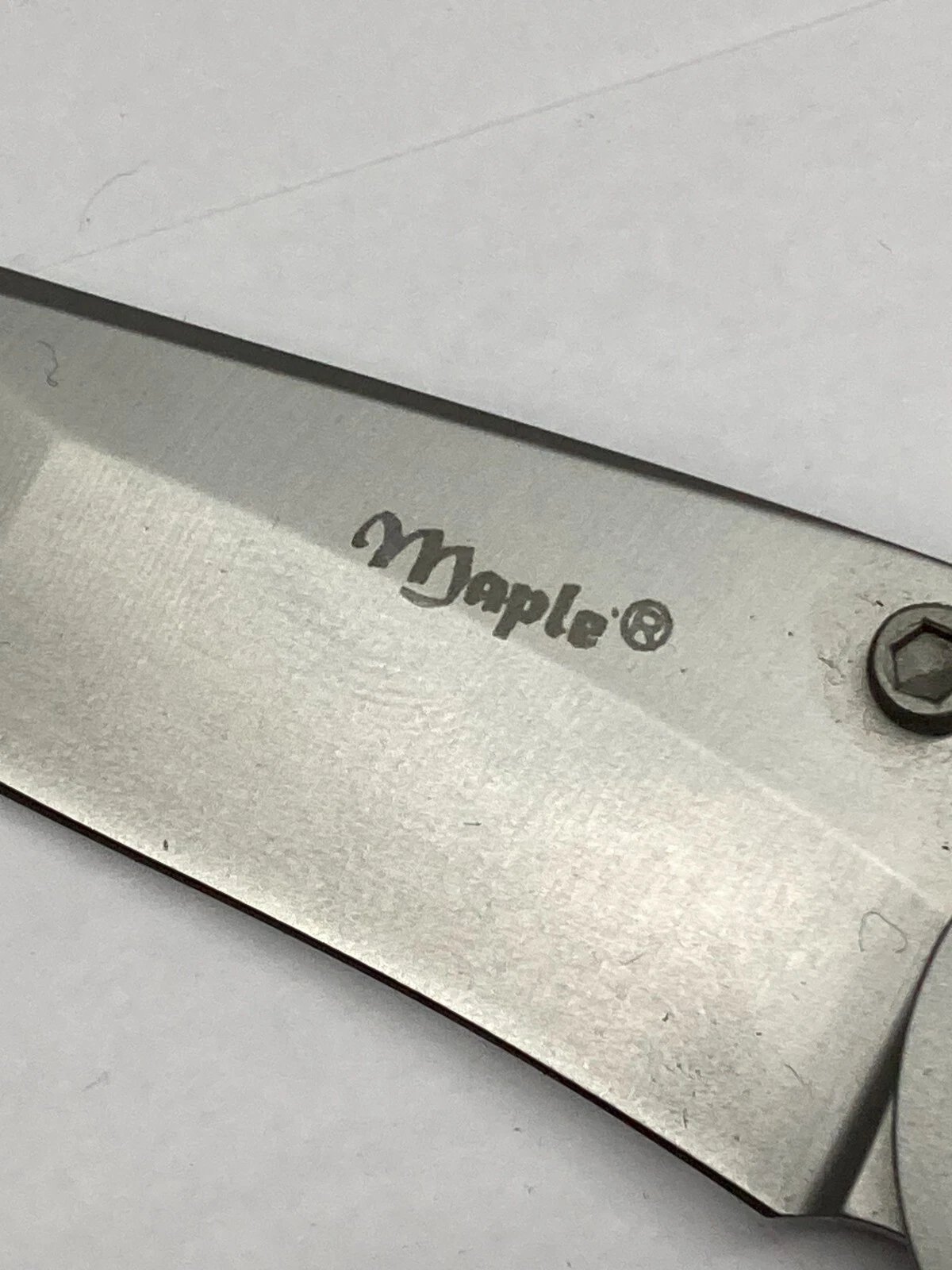 MAPLE FOLDING KNIFE / PLAIN BLADE, THUMB SWITCH, POCKET CLIP, FRAME LOCK 20021 Condition: Dealer New Old Stock (NOS). Stored over 25 years; never used or sharpened.