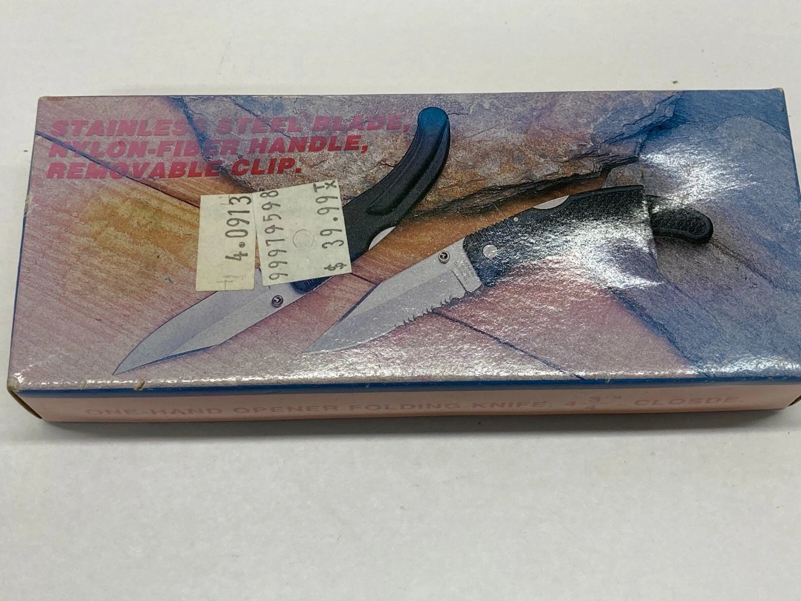 FOLDING LOCKBACK KNIFE / COMBO BLADE WITH POCKET CLIP K7170S Condition: Dealer New Old Stock (NOS). Stored over 25 years; never used or sharpened.