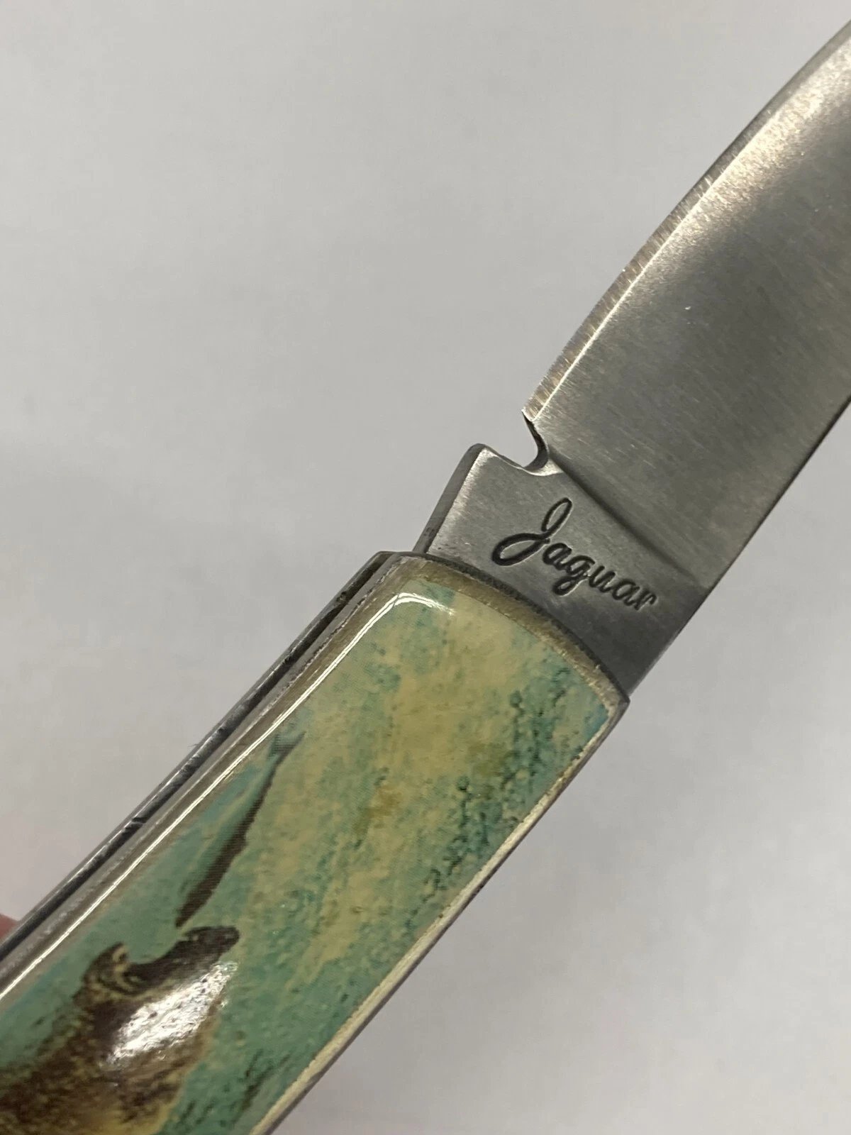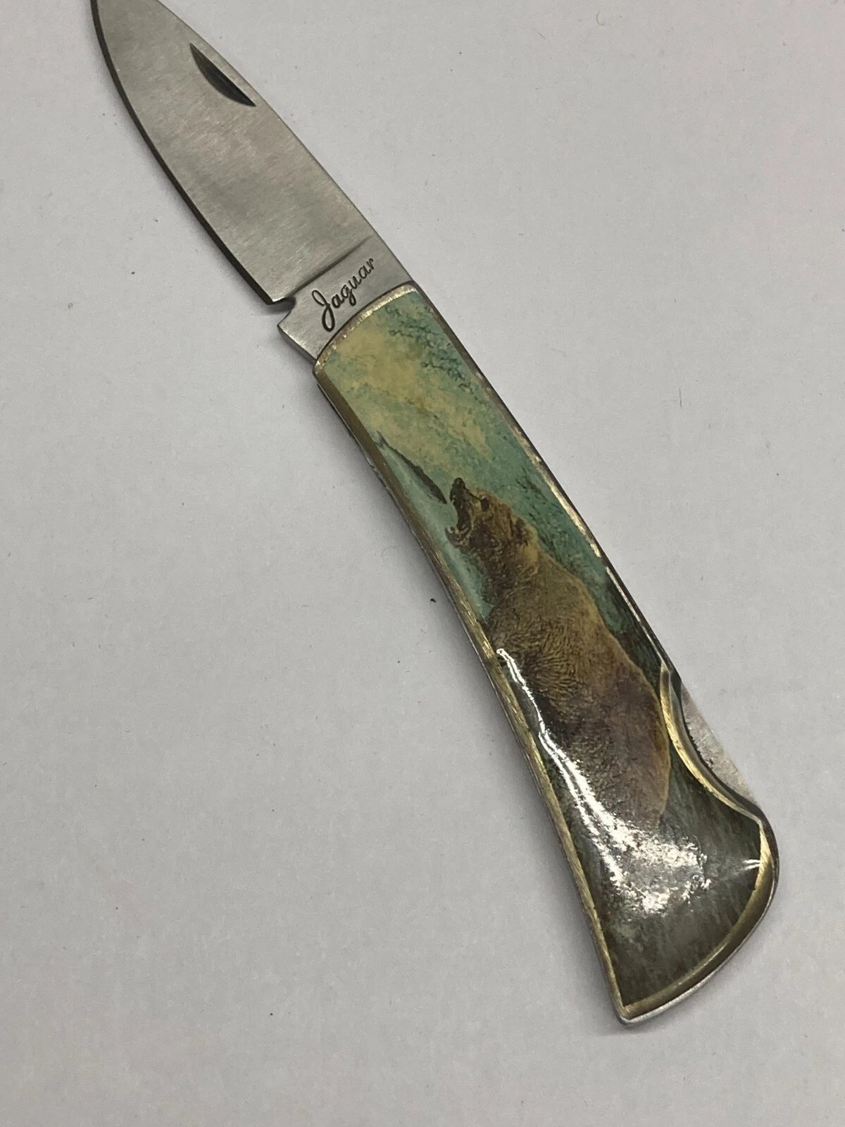 JAQUAR BEAR FOLDING POCKET KNIFE IN TIN Condition: New Old Stock (Dealer Stock). Stored over 25 years; never used or sharpened.