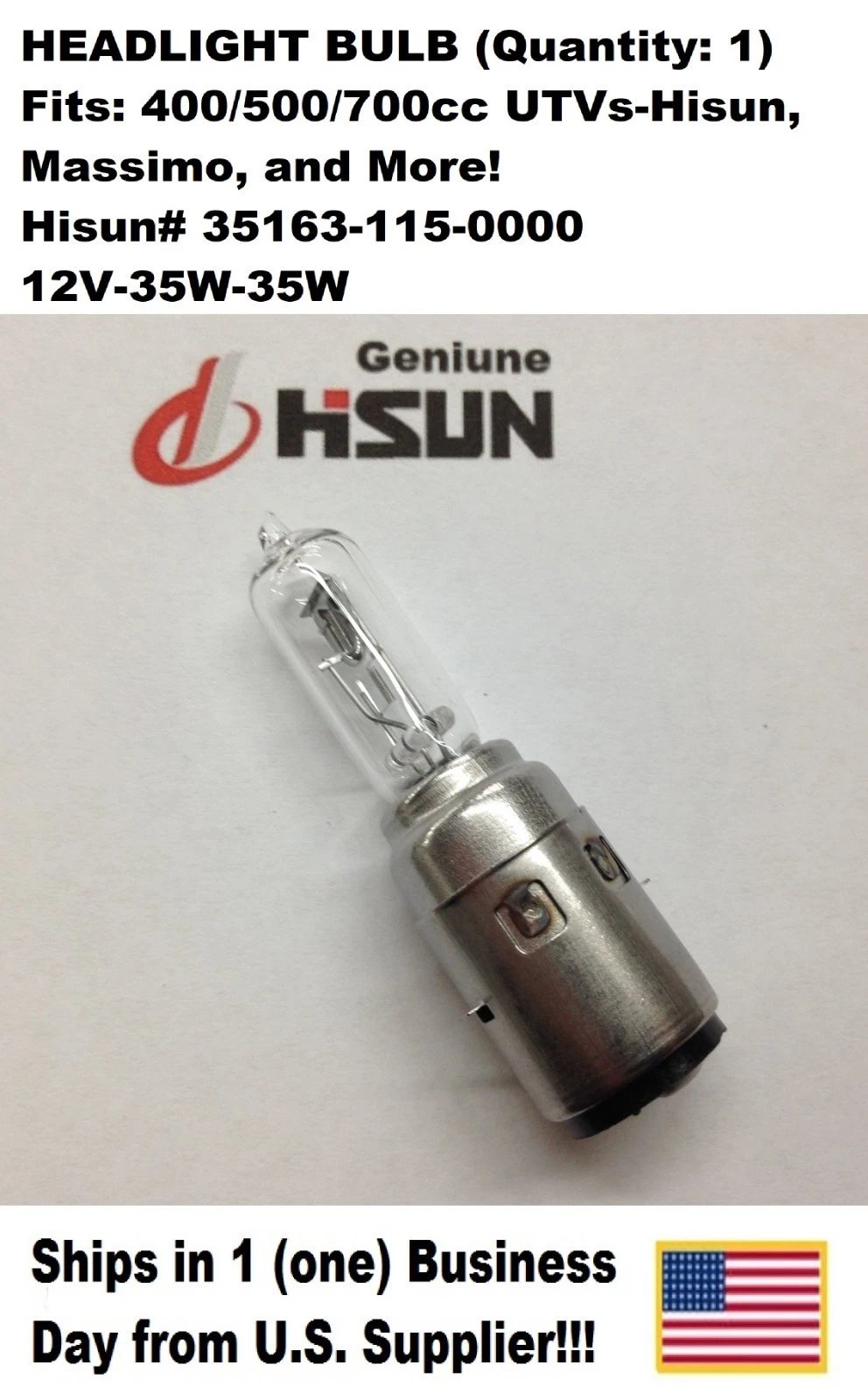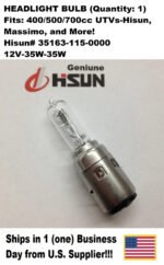 HEADLIGHT BULB – HISUN 400/500/700 UTV – MPN 35163-115-0000 (SINGLE BULB OFFER) Condition: New — Genuine Hisun OEM Part Product Description: Factory replacement 12V 35/35W headlight bulb designed for HiSun-based UTVs equipped with Yamaha-st