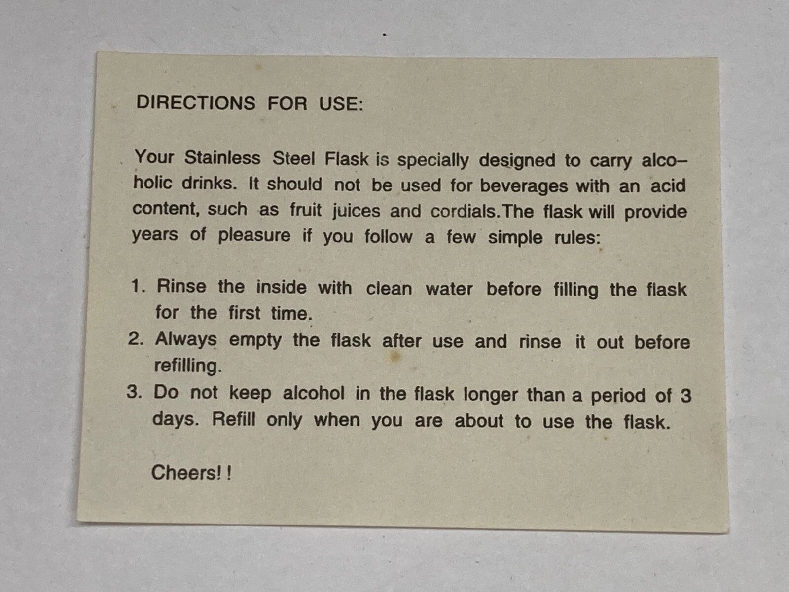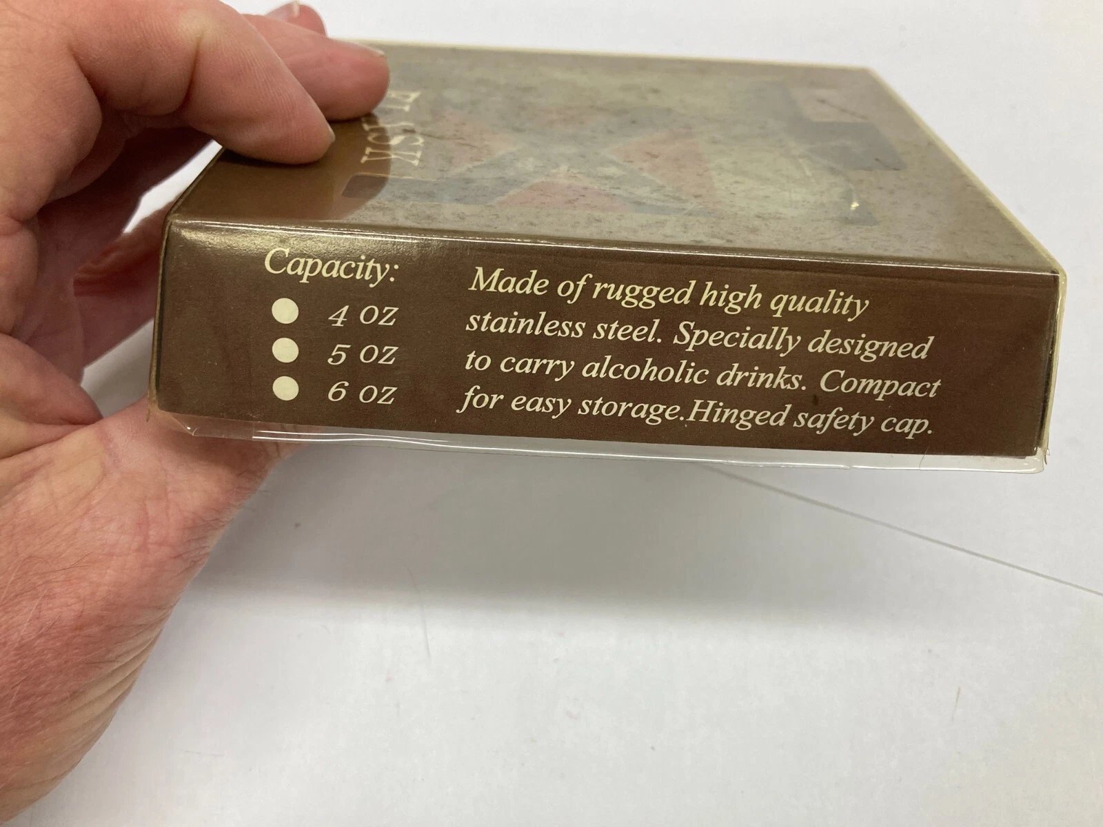 HERITAGE FLASK 5OZ STAINLESS STEEL Condition: New (Dealer Old Stock – NOS) Collectible: Yes Brand / Manufacturer: Unbranded Model Number: FS-1205F Country of Manufacture: China UPC: 805319304913 Stored for over 25 years and never used. Flas
