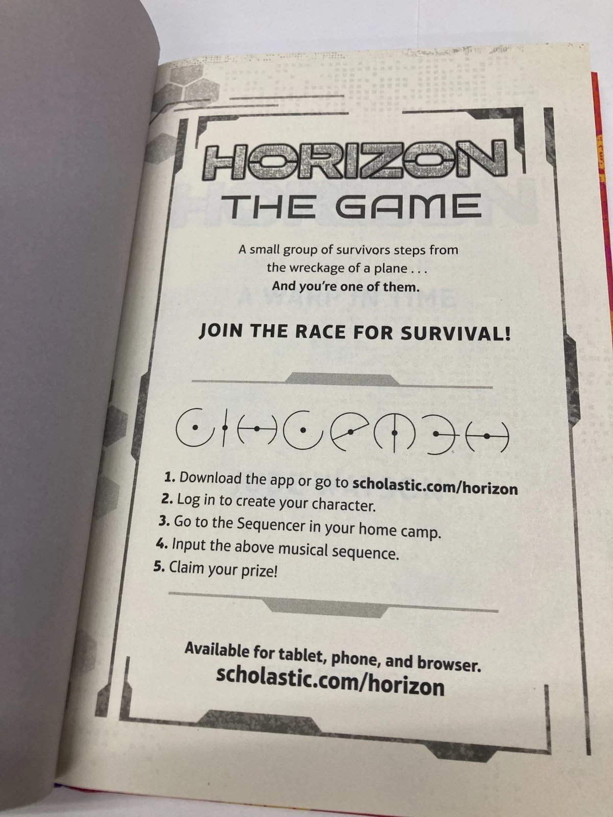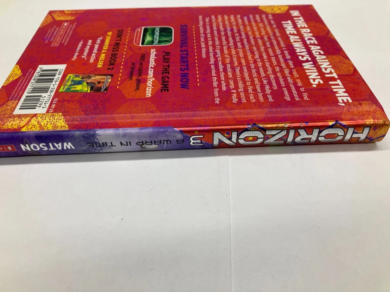 HORIZON, BOOK 3: A WARP IN TIME – HARDCOVER (2018) Condition: Very Good – Clean interior pages, tight spine, minimal shelf wear. MPN / Item Number: 1338277111 UPC: 9781338277111 Country of Manufacture: Unknown Manufacturer: Scholastic Autho