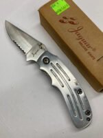 JAQUAR STAINLESS STEEL FOLDER / COMBO BLADE, LINER LOCK, AND POCKET CLIP C-7272A (DEALER OLD STOCK) Condition: New (Dealer Old Stock – NOS) Brand / Manufacturer: Jaquar Model Number: C-7272A Country of Manufacture: China UPC: N/A Stored for