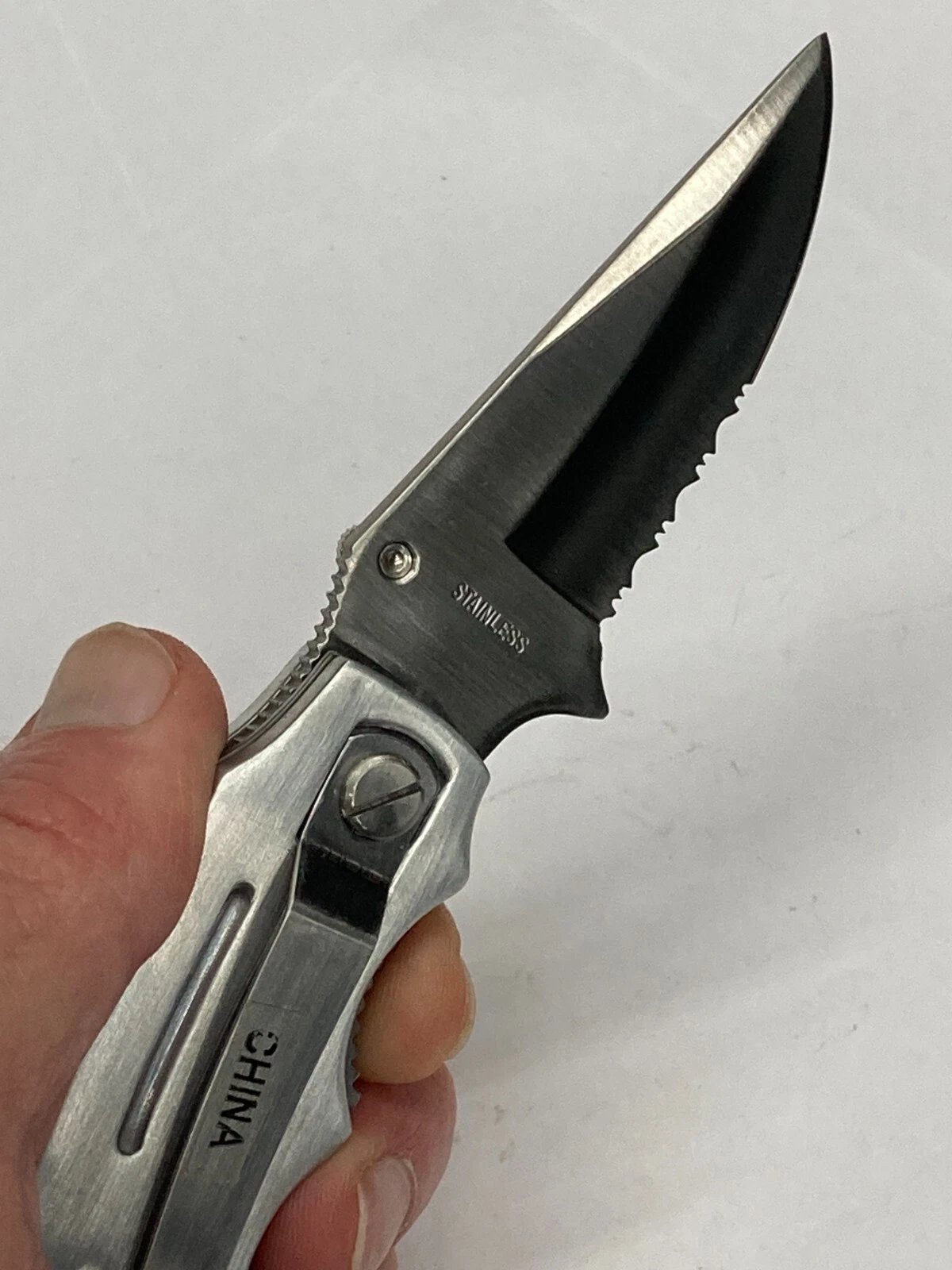JAQUAR STAINLESS STEEL FOLDER / COMBO BLADE, LINER LOCK, AND POCKET CLIP C-7272A (DEALER OLD STOCK) Condition: New (Dealer Old Stock – NOS) Brand / Manufacturer: Jaquar Model Number: C-7272A Country of Manufacture: China UPC: N/A Stored for
