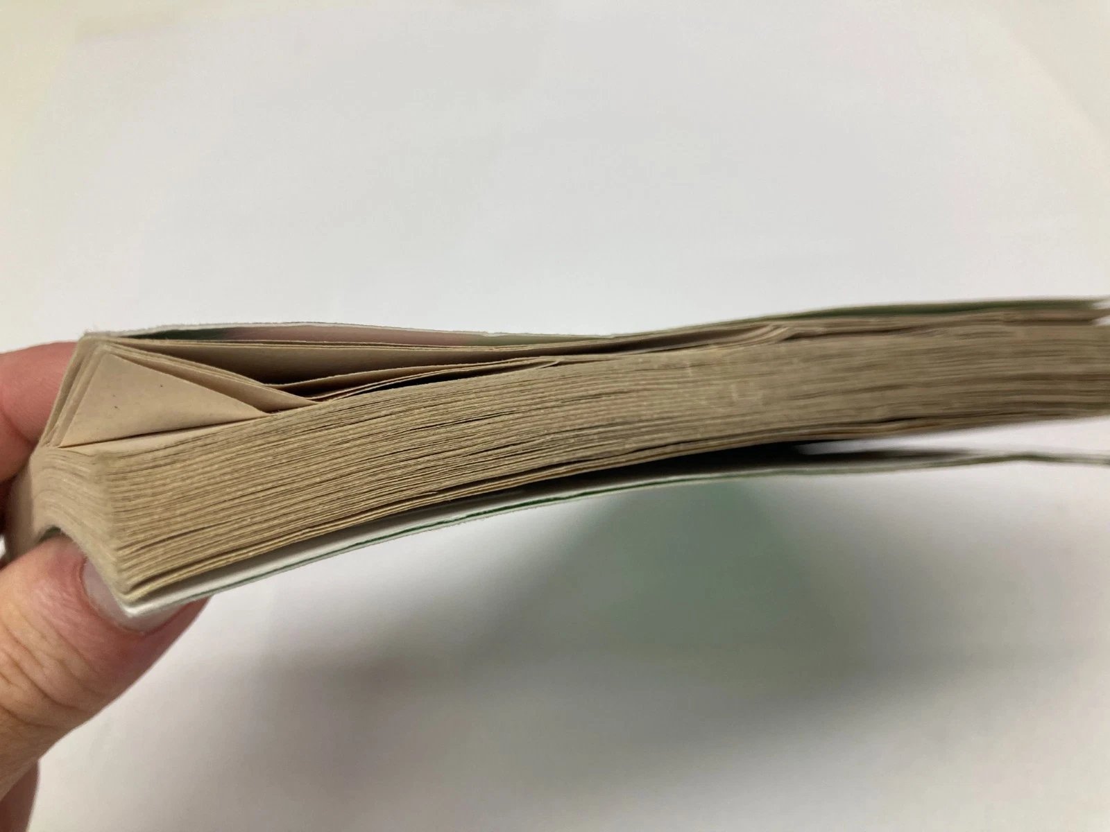 Condition: Acceptable – Noticeable wear including folds, creases, and curling on corners. Writing marks and sticker residue on the first few pages. Pages remain fully intact and readable.
